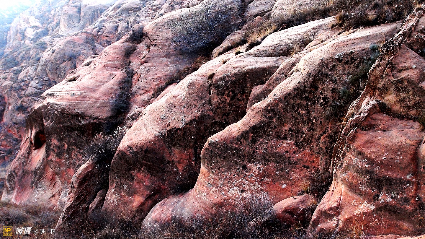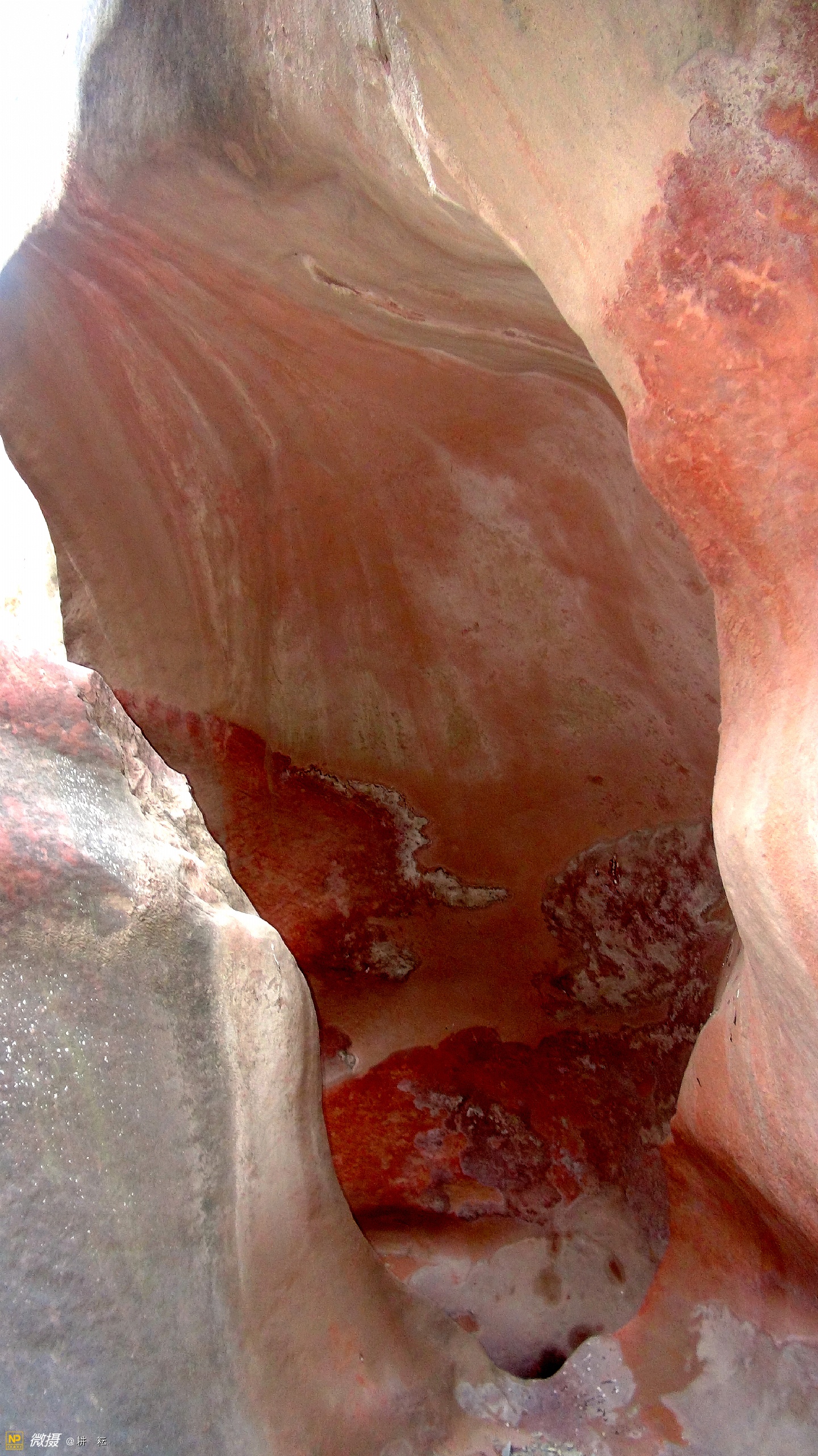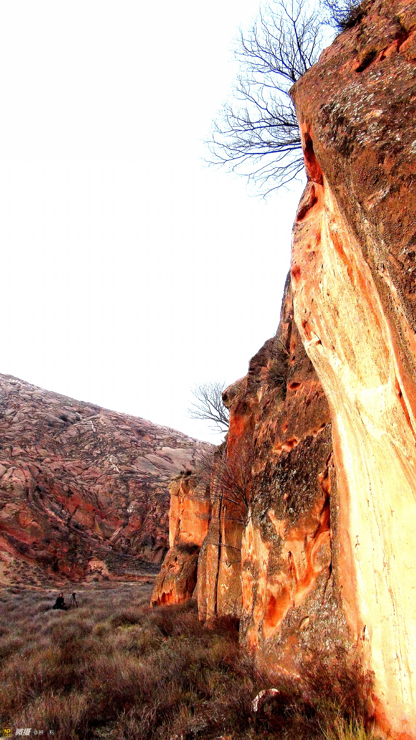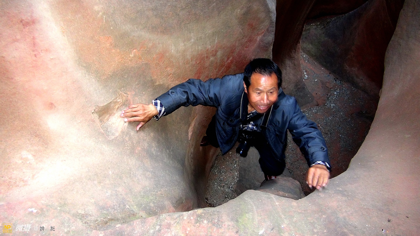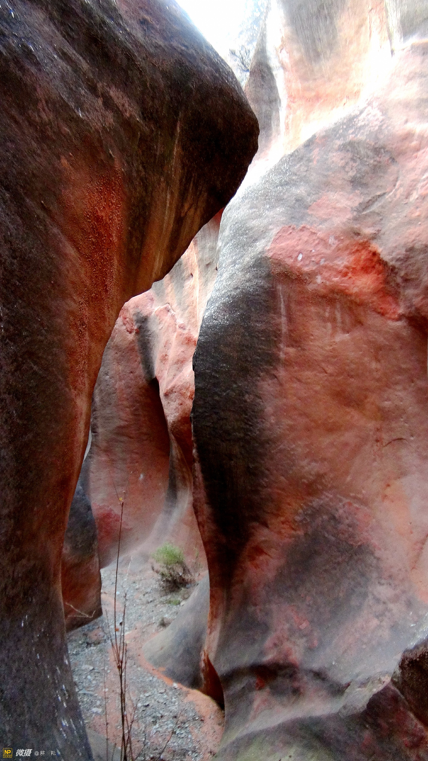 我与一影友走进禅塔山迷魂沟,被眼前奇特的自然景观所吸引,这里的山,红入朝霞千姿百态;石,橙中泛白峥嵘岭峻峭;树,近坡慢云郁郁葱葱;洞,或悬于悬崖峭壁。最后我们又走进狭小的地沟,又被眼前的景观所吸引——