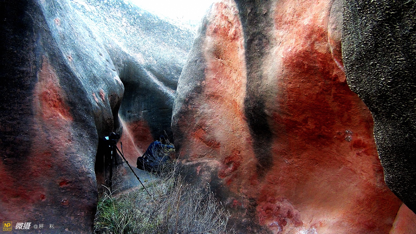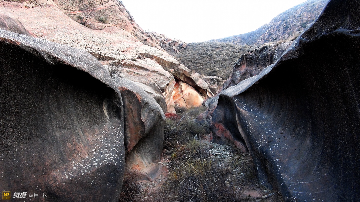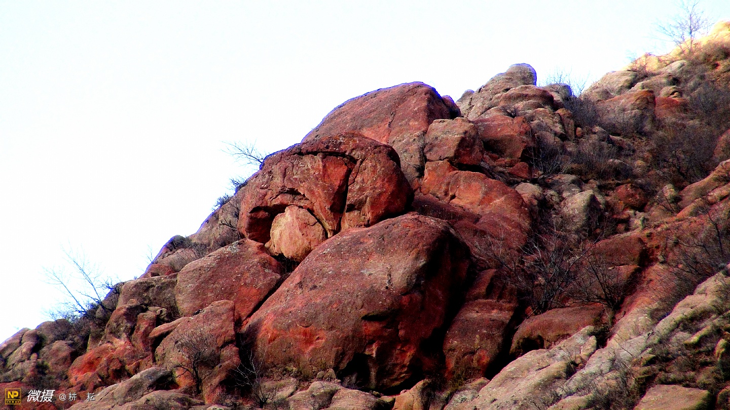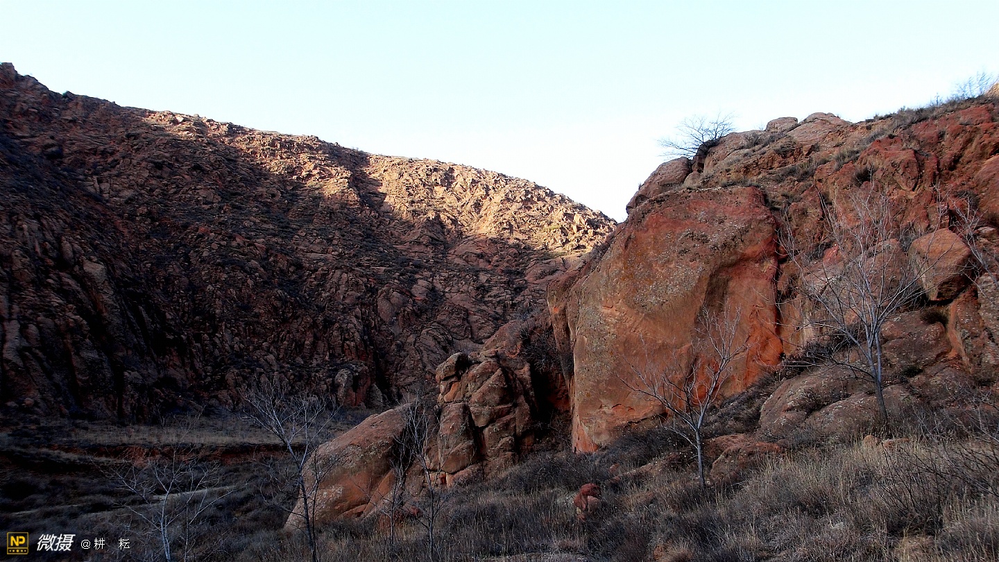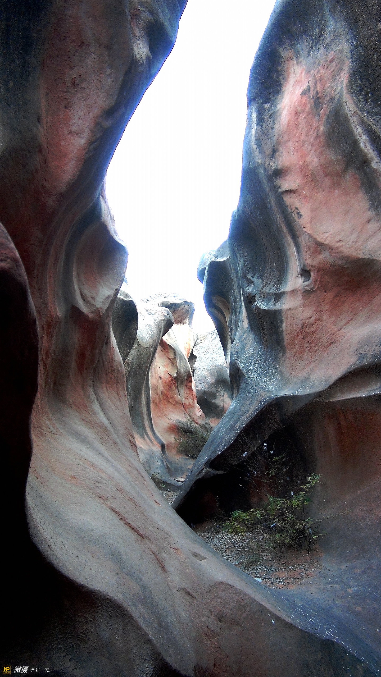 我与一影友走进禅塔山迷魂沟,被眼前奇特的自然景观所吸引,这里的山,红入朝霞千姿百态;石,橙中泛白峥嵘岭峻峭;树,近坡慢云郁郁葱葱;洞,或悬于悬崖峭壁。最后我们又走进狭小的地沟,又被眼前的景观所吸引——