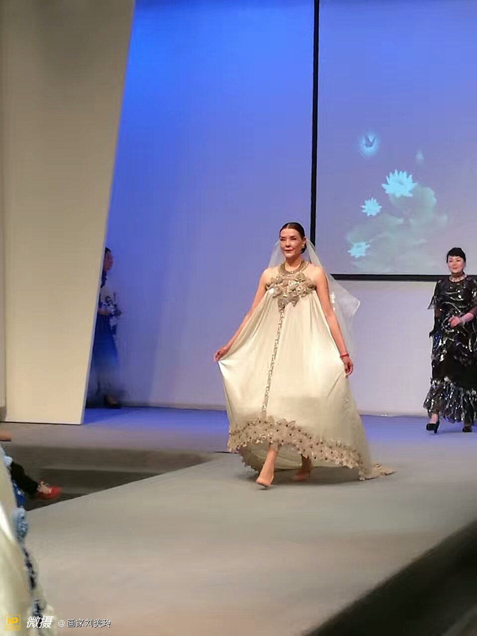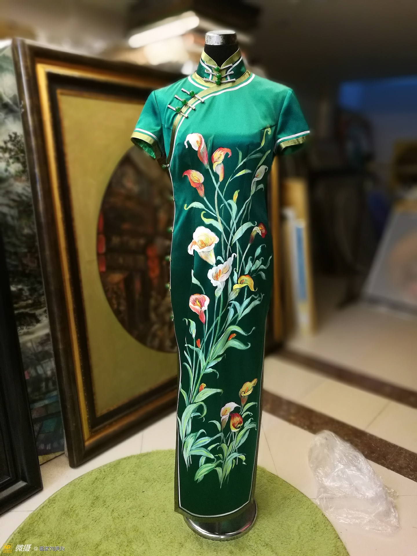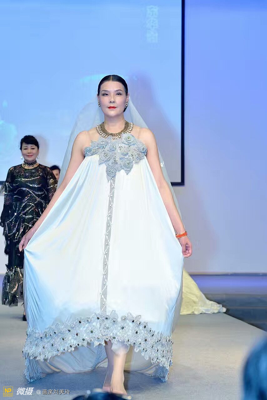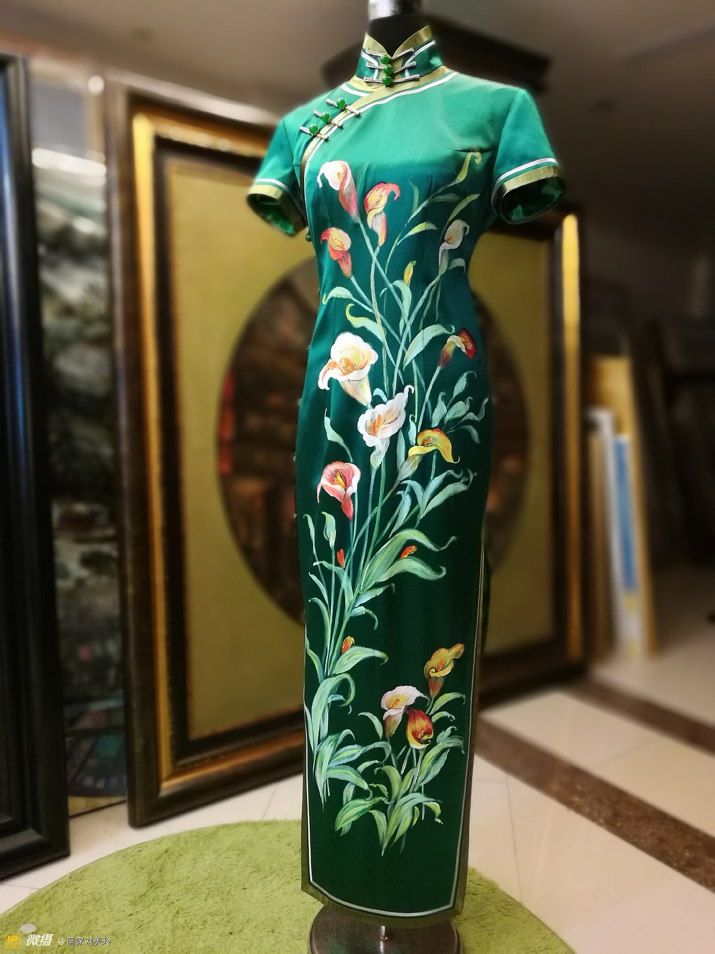 美丽的星光,我画的马蹄莲旗袍,她穿一定美