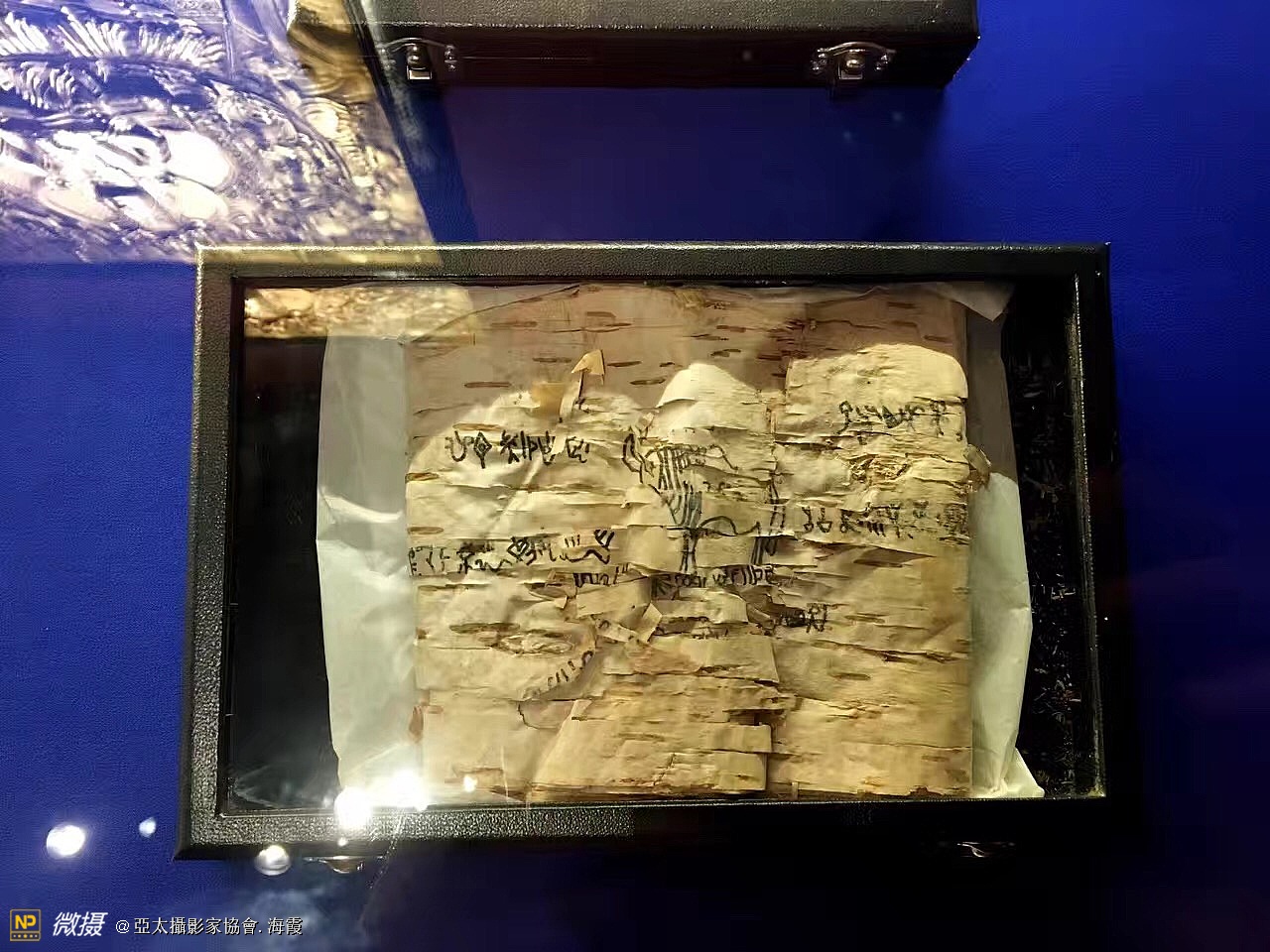 年代最早的一部“贝叶经”写在白色桦树皮上,整部经书呈长方形书本状,厚不及寸,每一页都薄如皱纸,虽然完整无缺,却已经粘连在一起。只要经过科学处理便能一页页完整无损地揭开,不会造成损坏