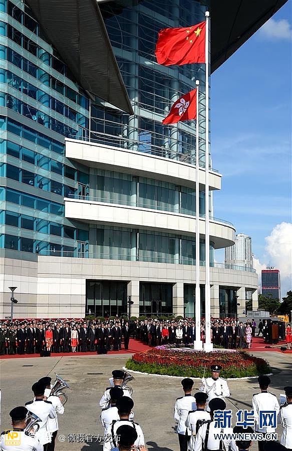 7月1日,香港特别行政区政府在金紫荆广场举行升旗仪式,庆祝香港回归祖国20周年。 新华社记者 吴晓凌 摄