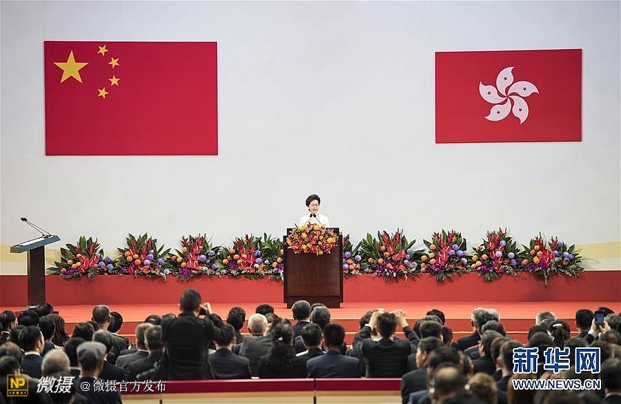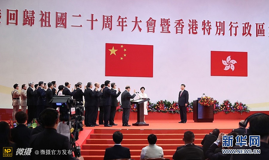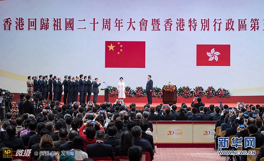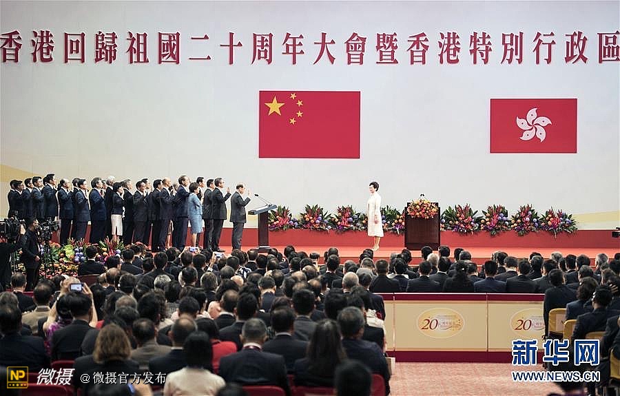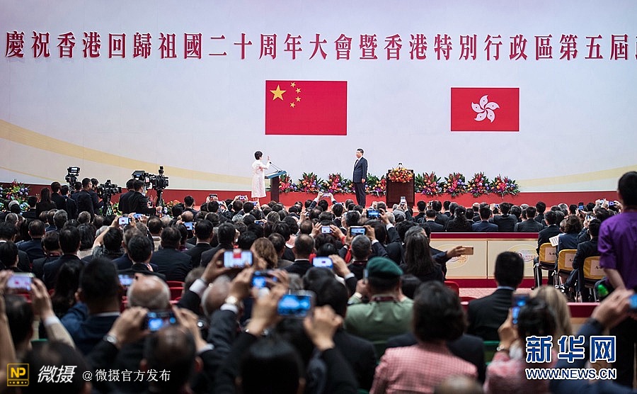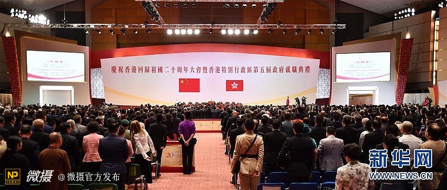 7月1日,庆祝香港回归祖国二十周年大会暨香港特别行政区第五届政府就职典礼在香港会展中心举行。 新华社记者 李涛 摄