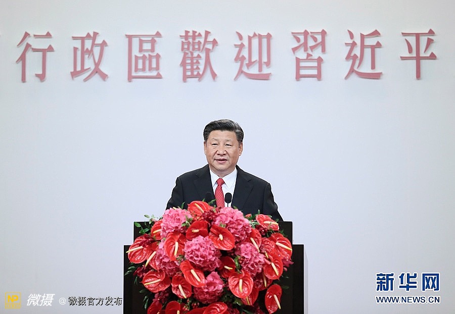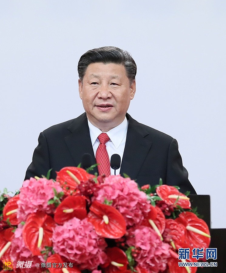 6月30日晚,国家主席习近平出席香港特别行政区政府欢迎晚宴并发表重要讲话。新华社记者 兰红光 摄