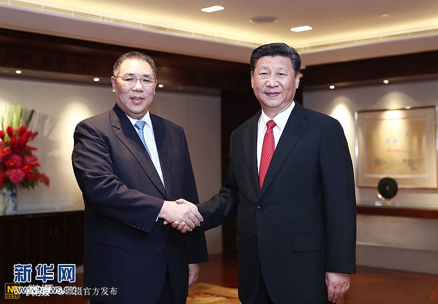 6月30日下午,国家主席习近平在香港会见前来出席庆祝香港回归祖国20周年活动的澳门特别行政区行政长官崔世安。新华社记者 鞠鹏 摄