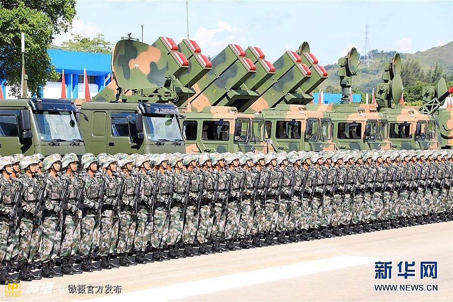 6月30日,中共中央总书记、国家主席、中央军委主席习近平在香港石岗军营视察并检阅中国人民解放军驻香港部队。这是驻港部队官兵接受检阅。新华社记者李刚 摄