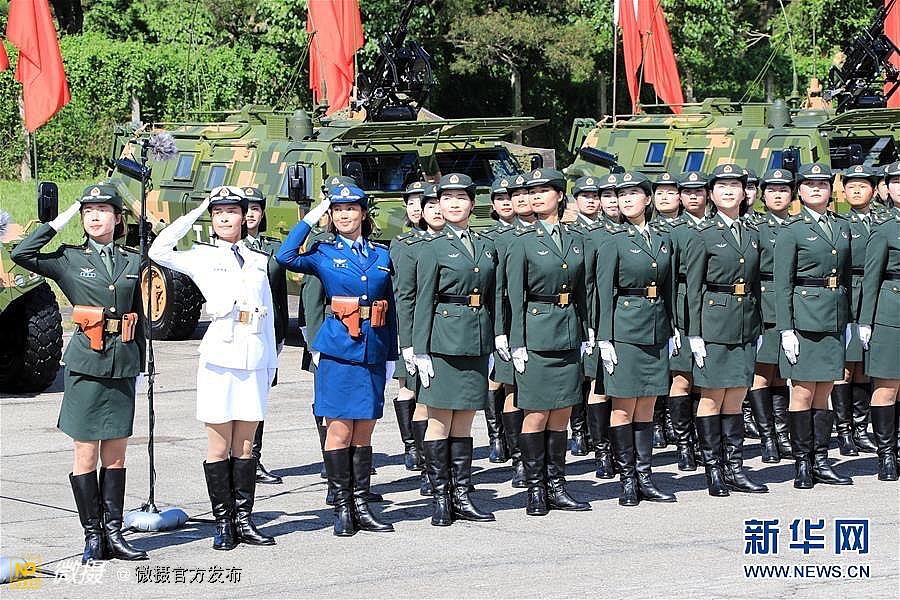 6月30日,中共中央总书记、国家主席、中央军委主席习近平在香港石岗军营视察并检阅中国人民解放军驻香港部队。这是女兵方队接受检阅。新华社记者李刚 摄