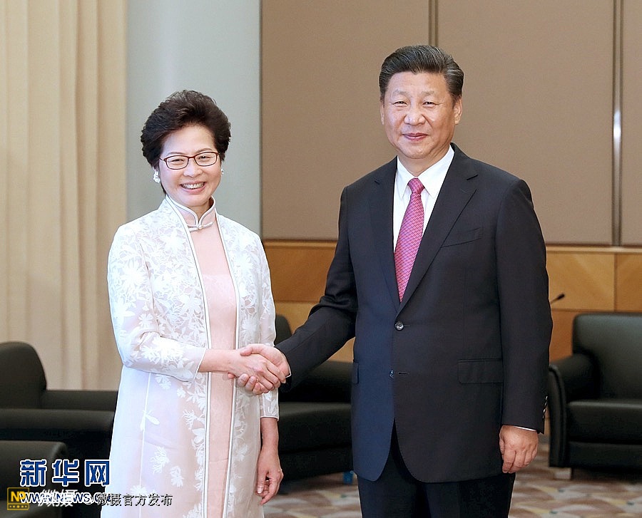 7月1日上午,国家主席习近平在香港会见刚刚就职的香港特别行政区行政长官林郑月娥。 新华社记者 马占成 摄