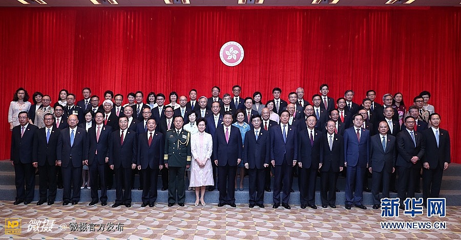 7月1日上午,国家主席习近平在香港特别行政区行政长官林郑月娥陪同下,会见香港特别行政区新任行政、立法、司法机构负责人。 新华社记者 鞠鹏 摄