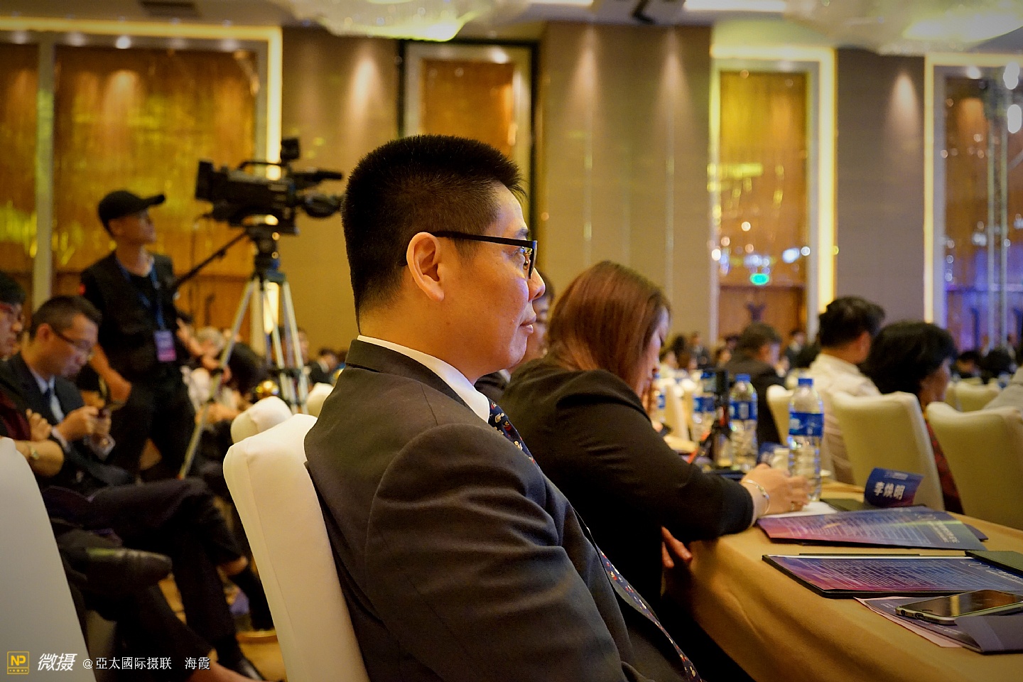 促进会秘书长吃饭时还在忙工作