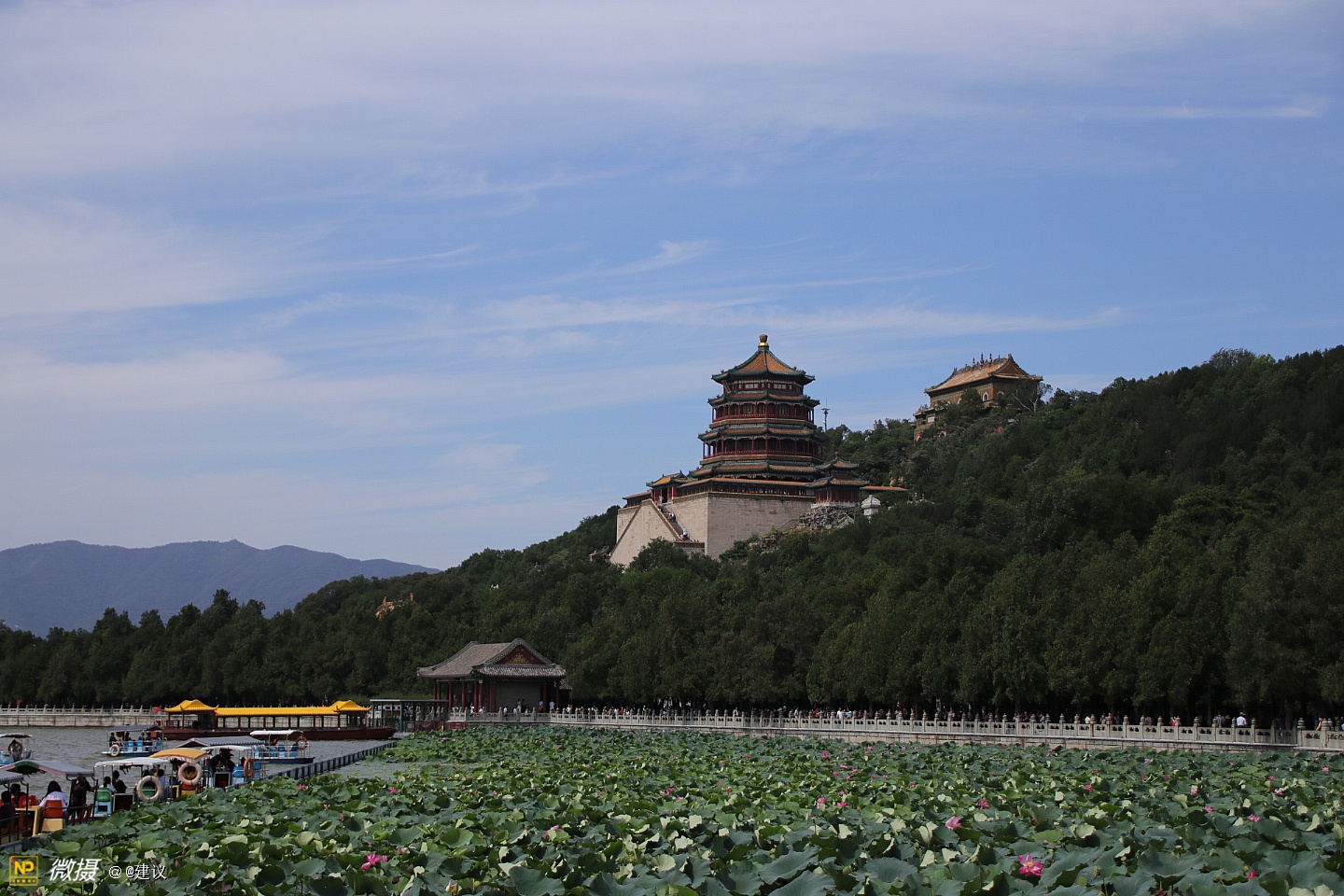 颐和园,中国清朝时期皇家园林,前身为清漪园,坐落在北京西郊,距城区十五公里,占地约二百九十公顷,与圆明园毗邻。它是以昆明湖、万寿山为基址,以杭州西湖为蓝本,汲取江南园林的设计手法而建成的一座大型山水园林,也是保存最完整的一座皇家行宫御苑,被誉为“皇家园林博物馆”,也是国家重点旅游景点。清朝乾隆皇帝继位以前,在北京西郊一带,建起了四座大型皇家园林。乾隆十五年(1750年),乾隆皇帝为孝敬其母孝圣皇后动用448万两白银在这里改建为清漪园,形成了从现清华园到香山长达二十公里的皇家园林区。咸丰十年(1860年),清漪园被英法联军焚毁。光绪十四年(1888年)重建,改称颐和园,作消夏游乐地。光绪二十六年(1900年),颐和园又遭“八国联军”的破坏,珍宝被劫掠一空。清朝灭亡后,颐和园在军阀混战和国民党统治时期,又遭破坏。1961年3月4日,颐和园被公布为第一批全国重点文物保护单位,与同时公布的承德避暑山庄、拙政园、留园并称为中国四大名园,1998年11月被列入《世界遗产名录》。