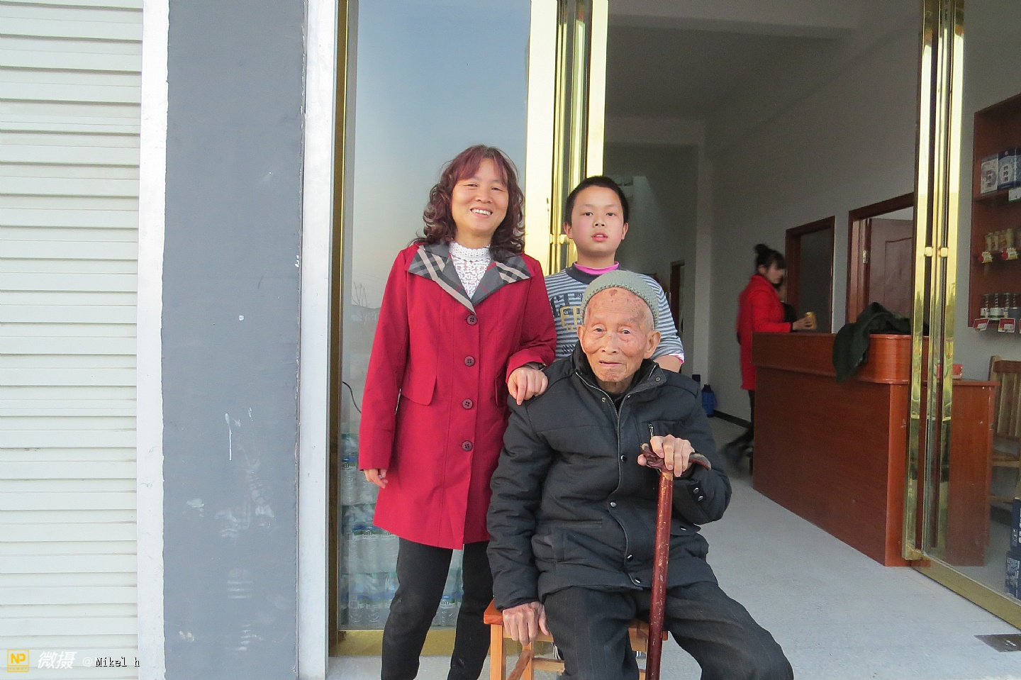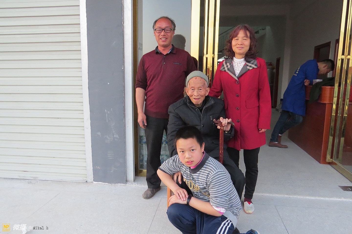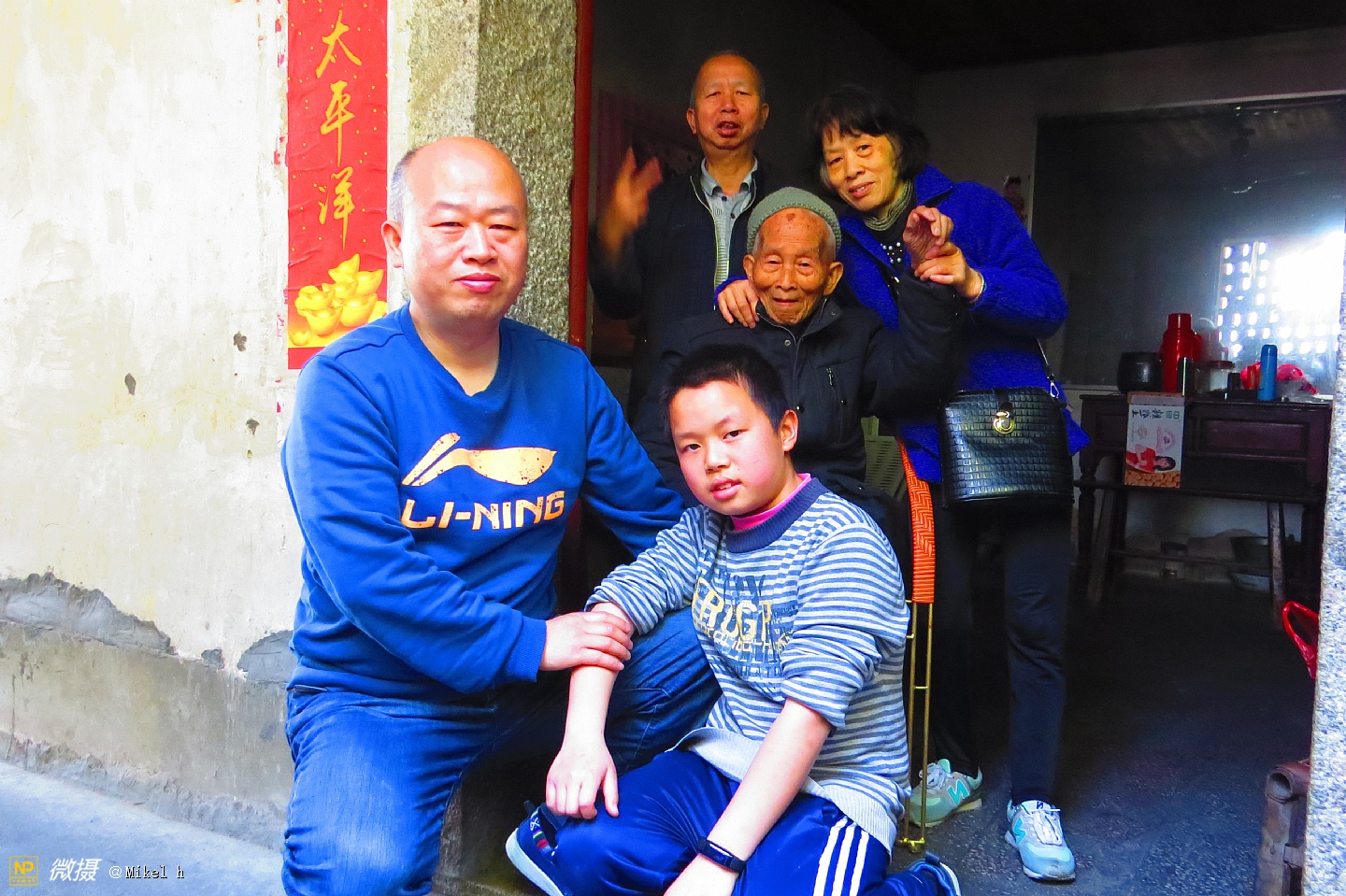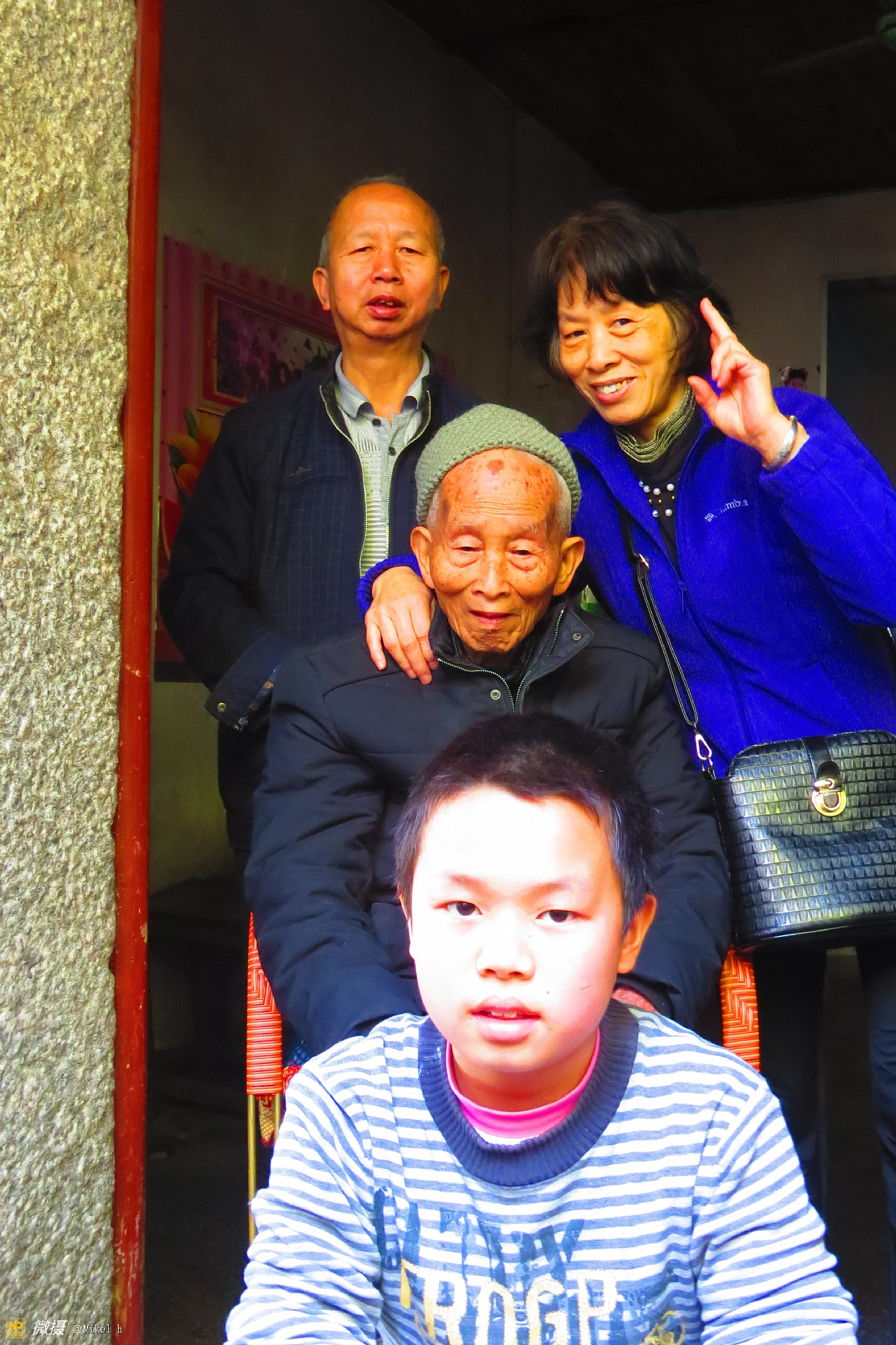 老田、女儿、长孙和曾孙在一起