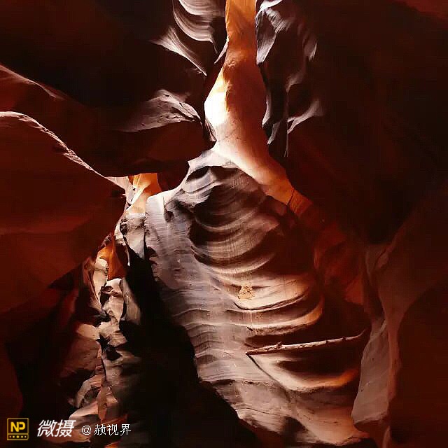 羚羊峡谷尽管属于狭缝谷,但当人深入谷底会发现它如同一个美妙的艺术宫殿,谷壁看似轻柔,实则非常坚硬,岩石表面像被精心打磨,纹层顺着岩壁流淌,如同一万年前的波浪被定格在这峡谷中。阳光从峡谷顶部进入,幻化出奇幻的色彩。所以也有人说,羚羊峡谷是“被上帝抚摸过的地方”。