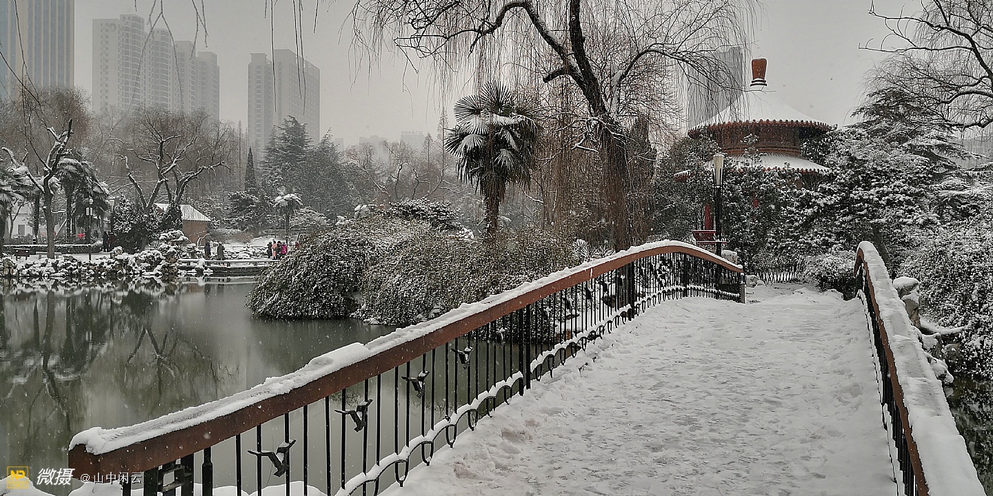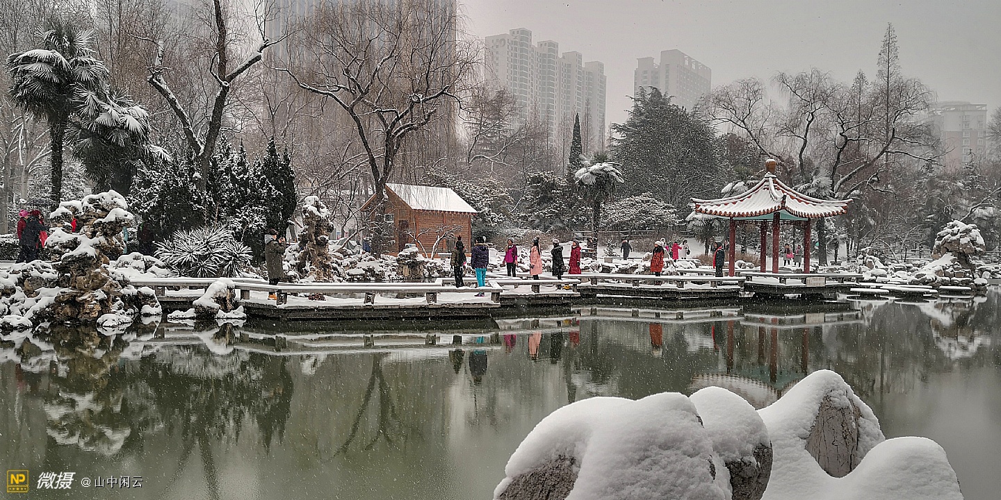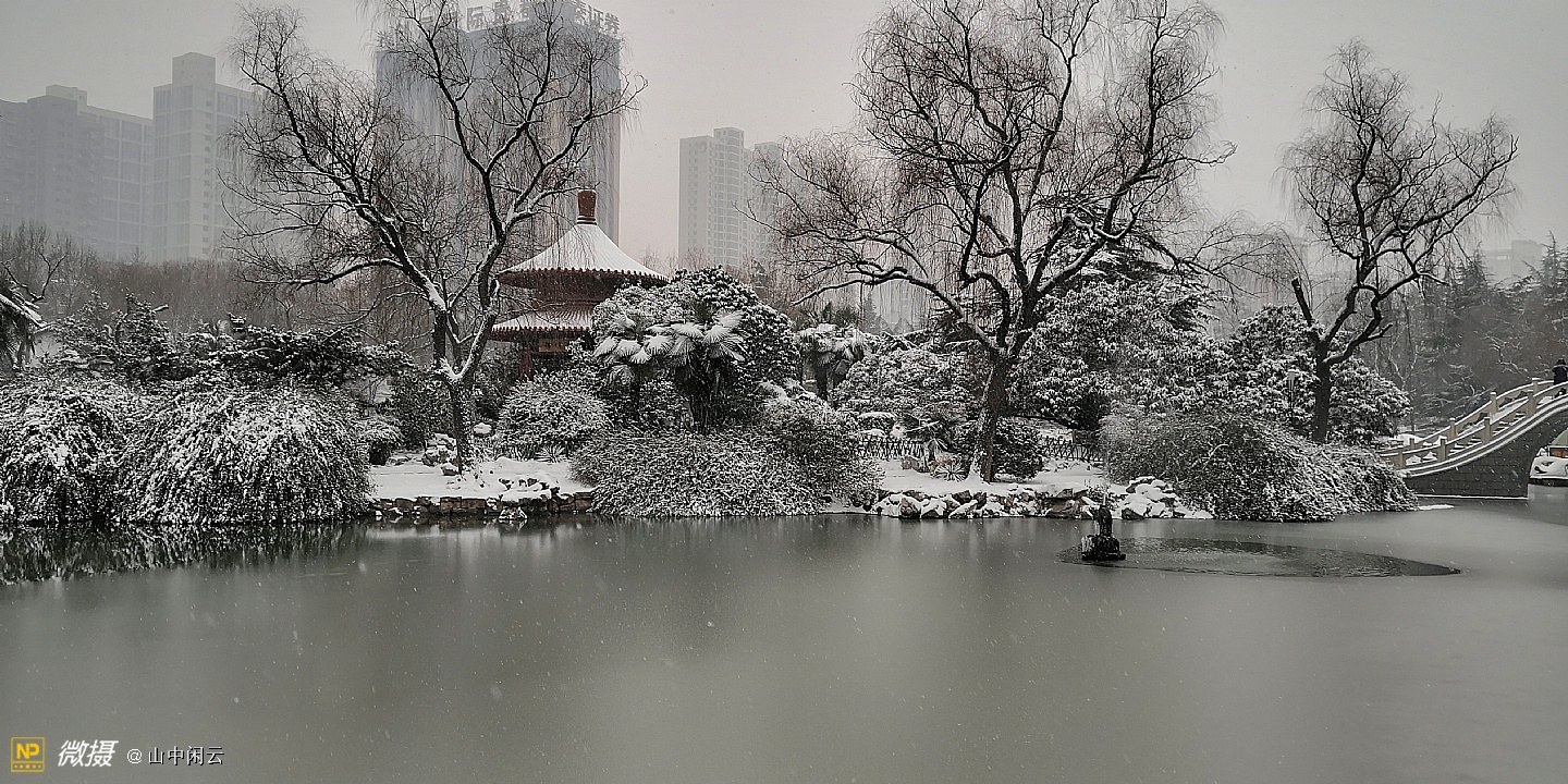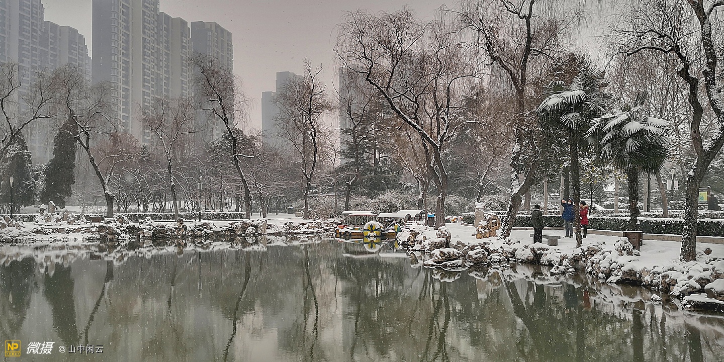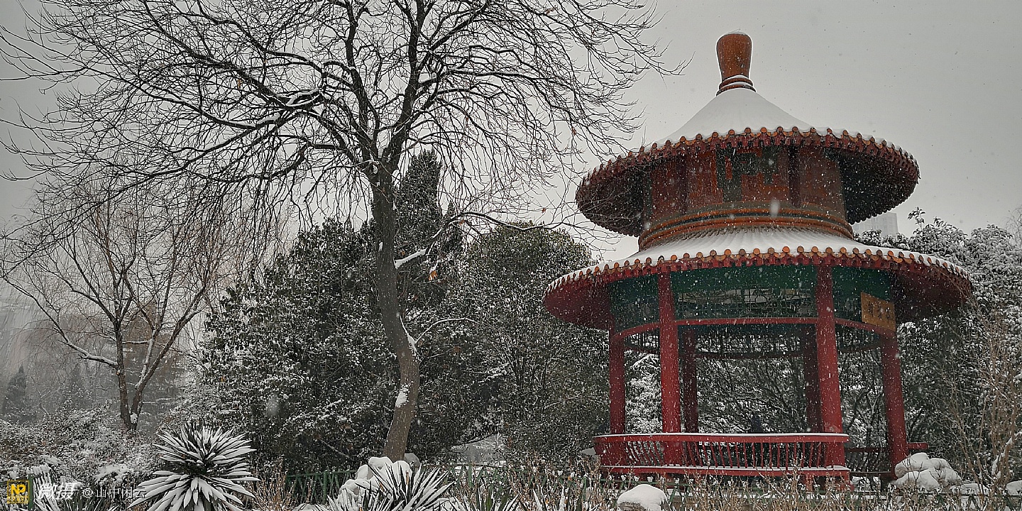 西苑雪景。西苑公园原名植物园,西苑公园始