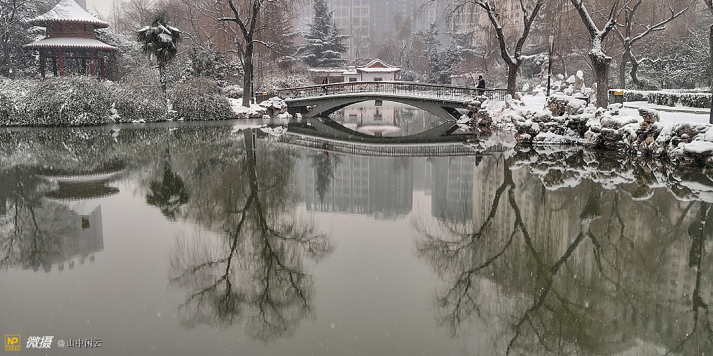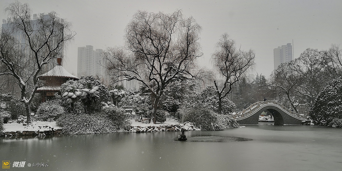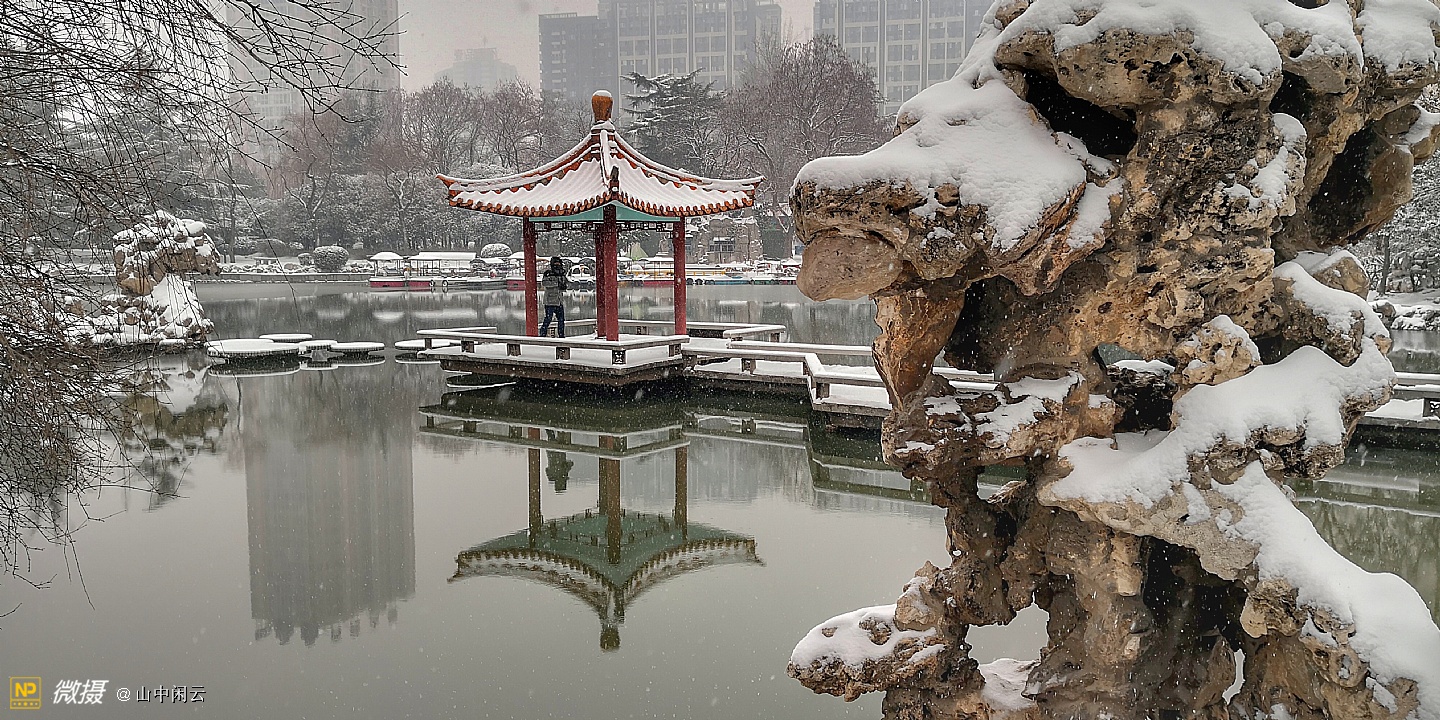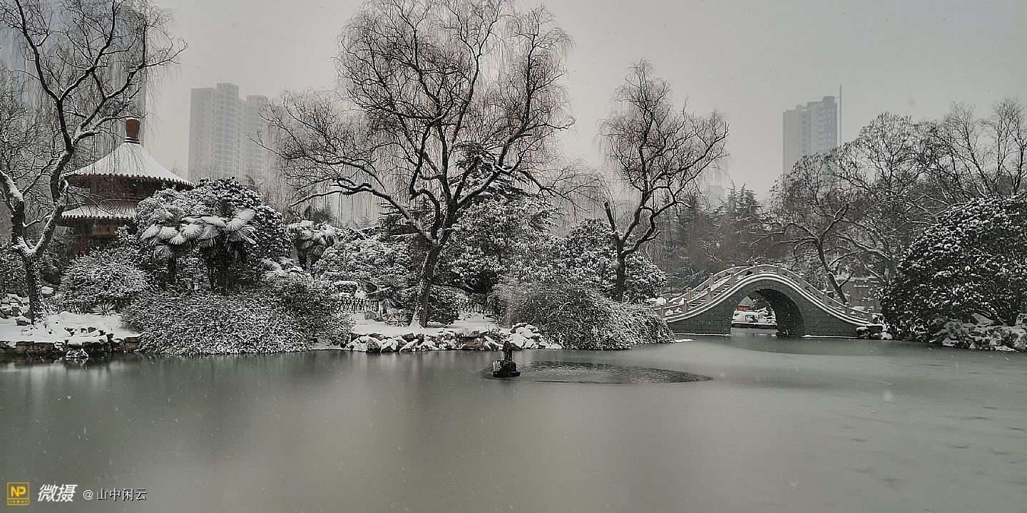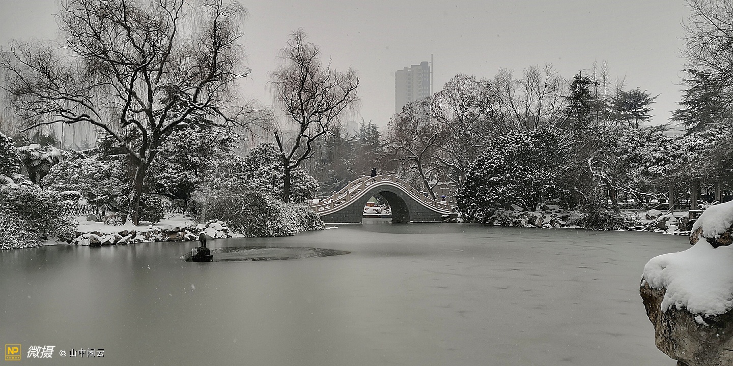 西苑雪景。西苑公园原名植物园,西苑公园始
