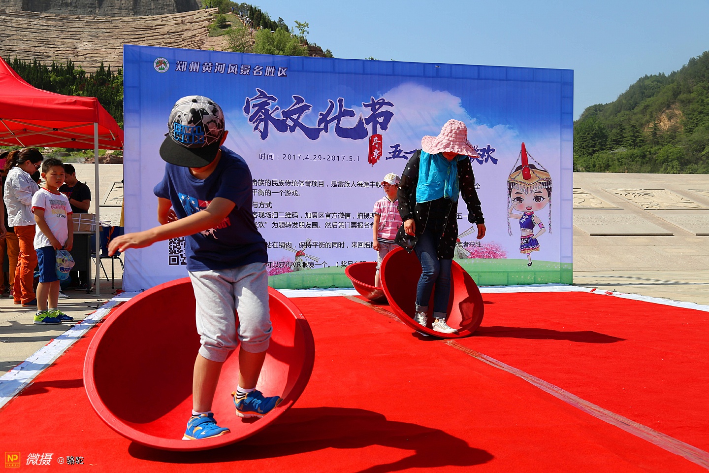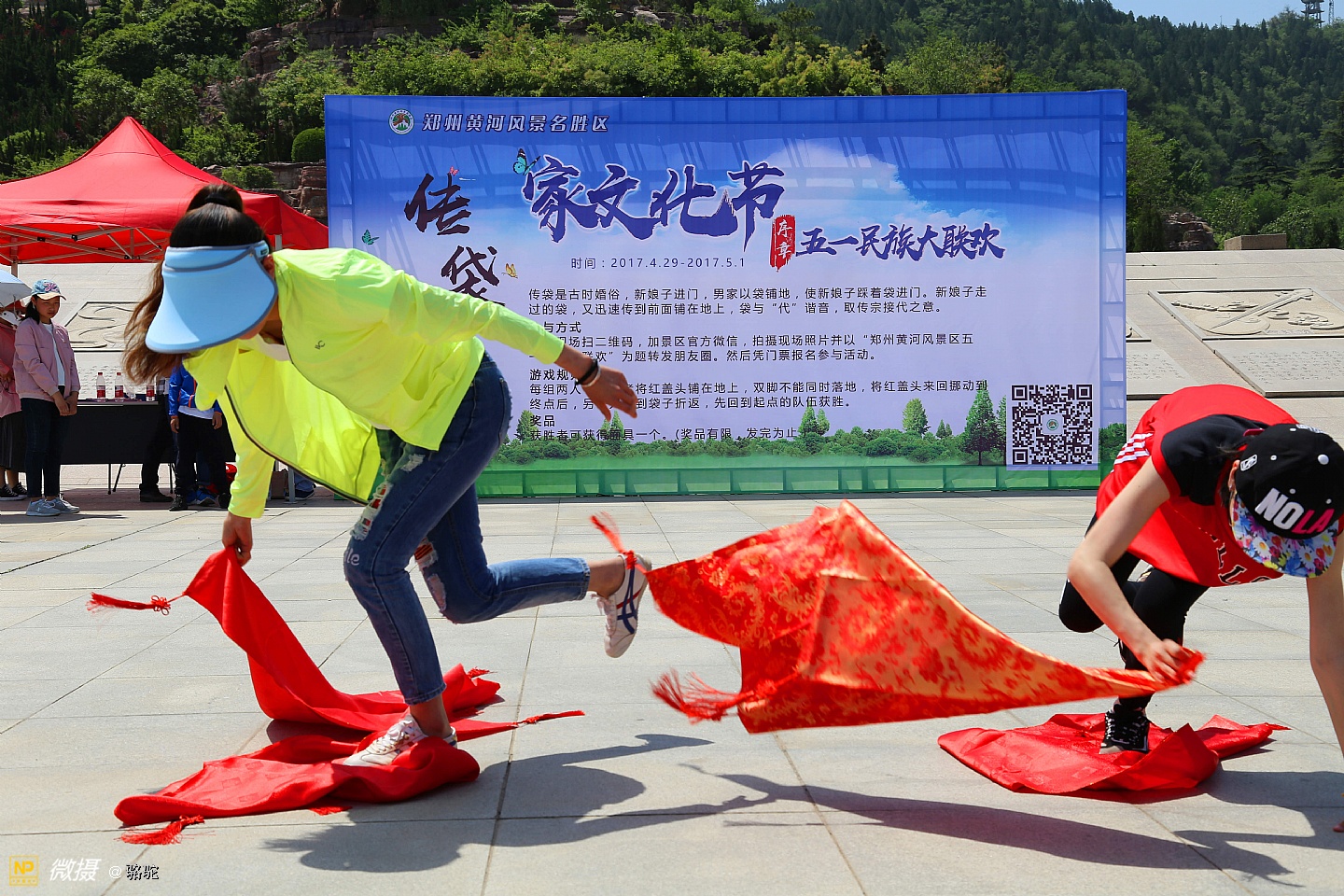 4月29日,“五一”假期第一天。郑州黄河风景名胜区“家文化节之民族大联欢”活动在景区内炎黄广场欢乐开启。现场设置了摇锅、传袋、投壶、抛绣球等多种游客能够广泛参与的比赛游戏,来展现汉族、黎族、畲族等民族的群众劳动之余的健身娱乐活动。除此之外还有多种民族服饰供游客拍照留念。新奇有趣的活动比赛和多种形式的奖品吸引众多游人争相参与,火爆的活动现场聚焦游客的目光,成“五一”旅游一大亮点。