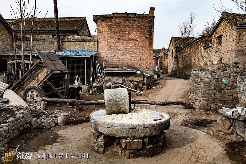 大过年的村里的一家人还在忙活着做馔面,用下面的石磨压面。