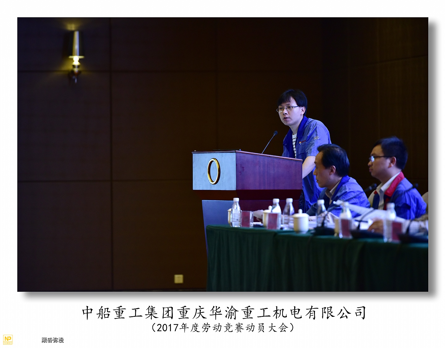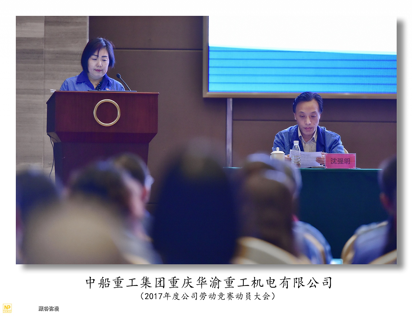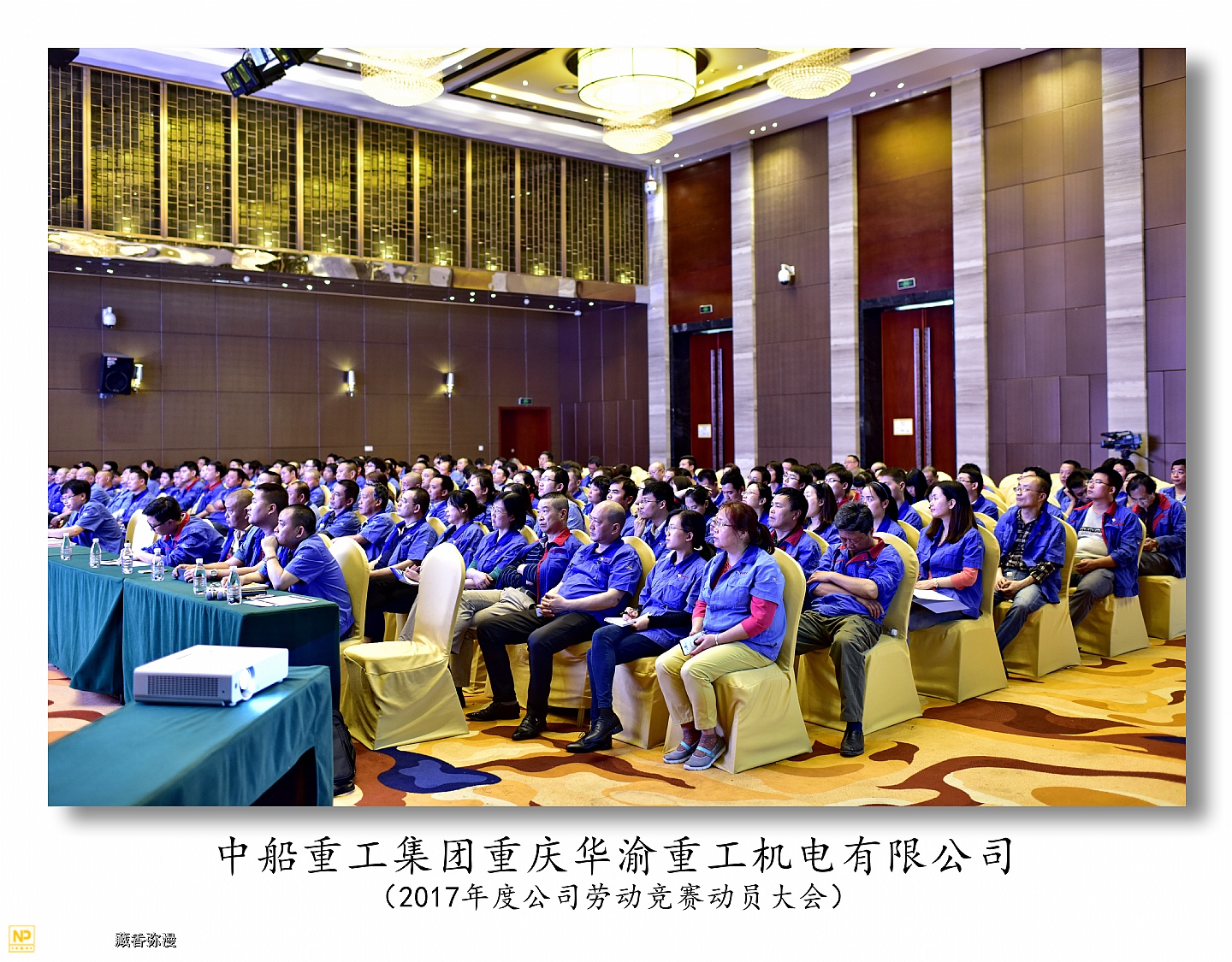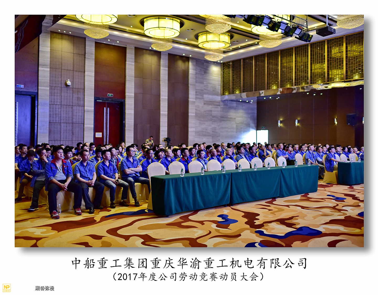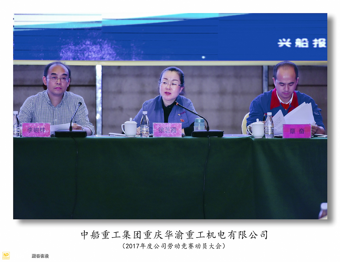 中船重工重庆华渝重工机电有限公司于2017年5月4日在两江新区鱼嘴瑞尔大酒店召开2017年度劳动竞赛动员大会,华渝集团总经理李俊林,工会主席冉宏云,人事处长王强,规划发展处副处长覃奋参加了大会。