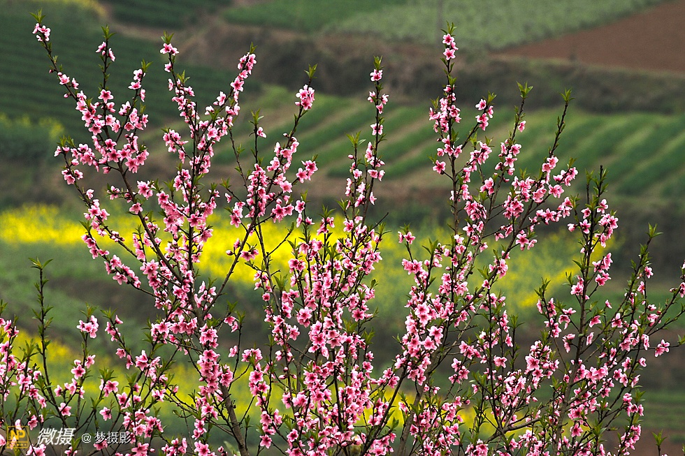 桃花一簇开无主,可爱深红映浅红,