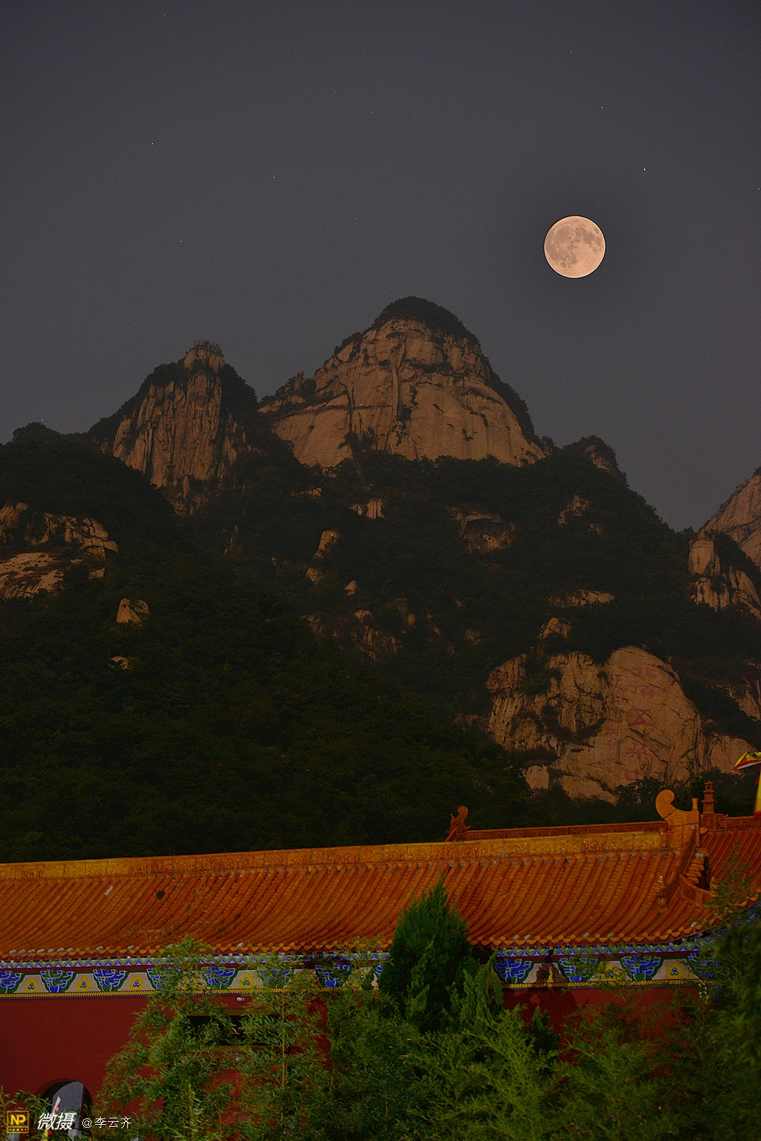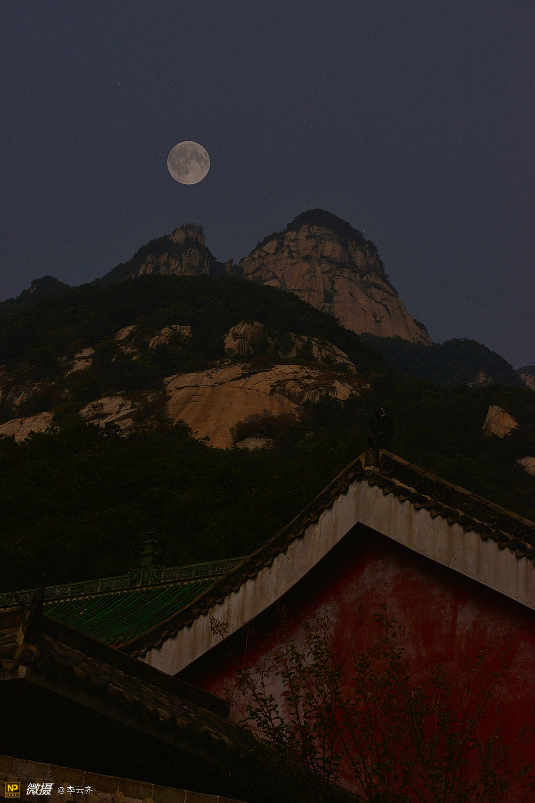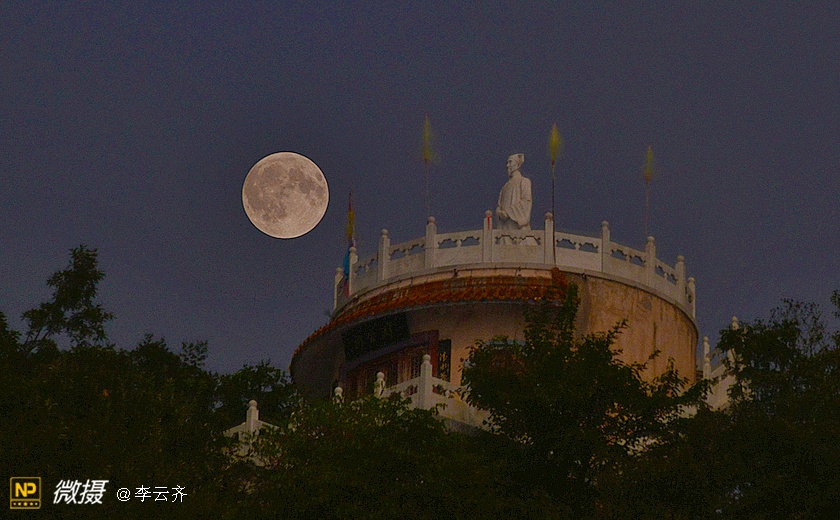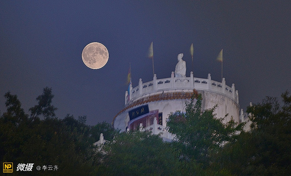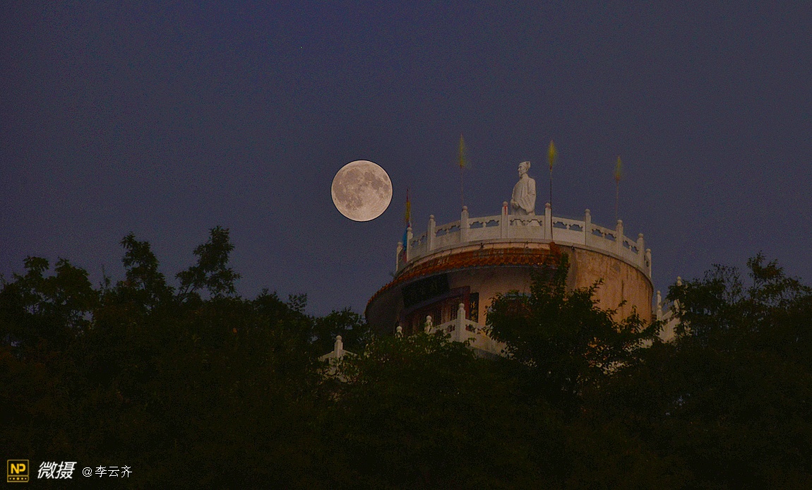 仙 道 观 月无边夜空却蓝幕,万里丘峦竟绿树;着色何须神笔力,仙道素衣笑玉兔。
