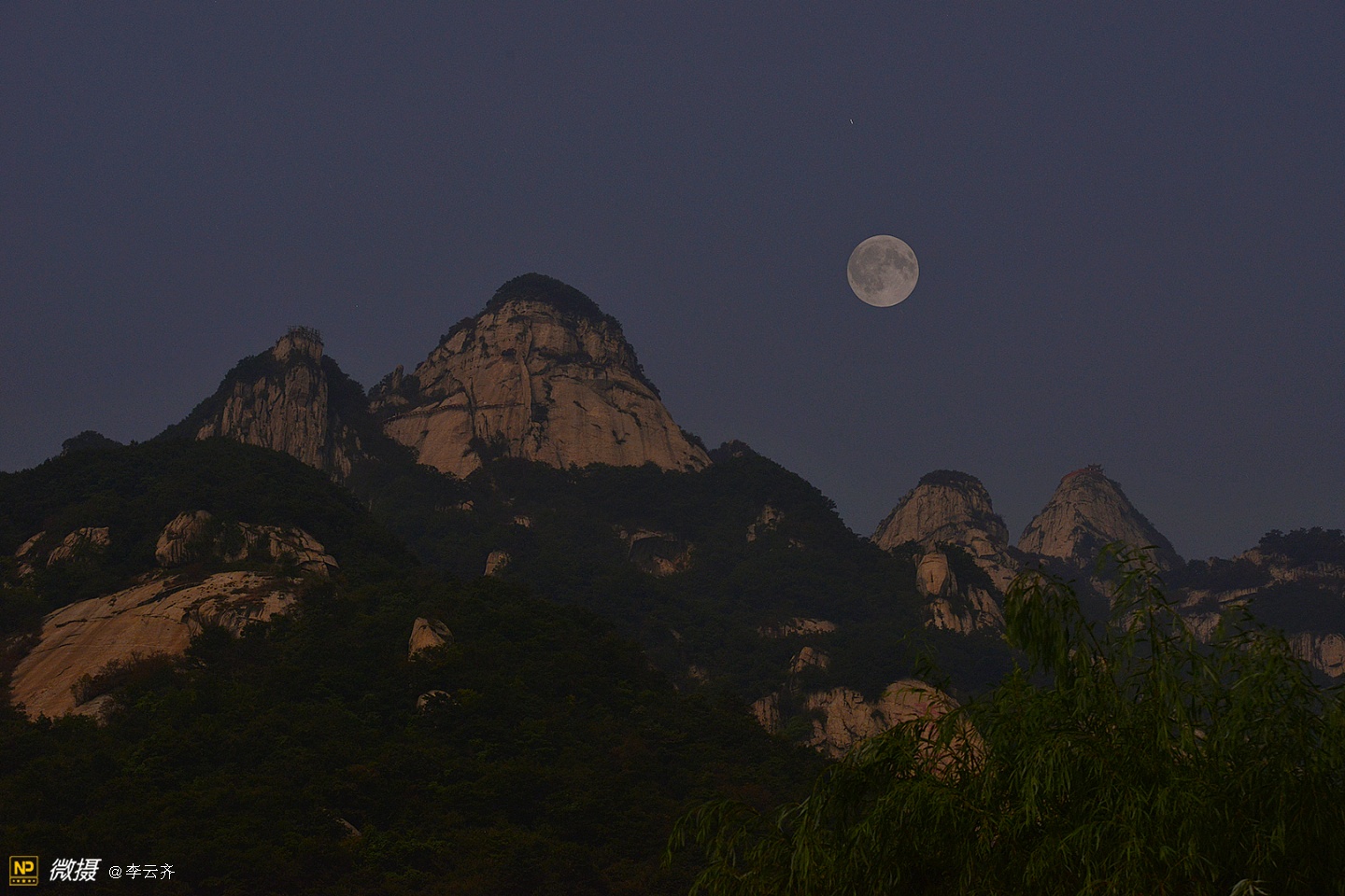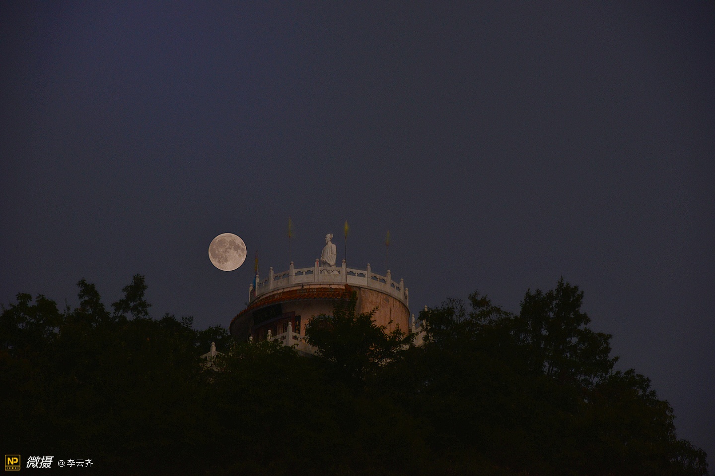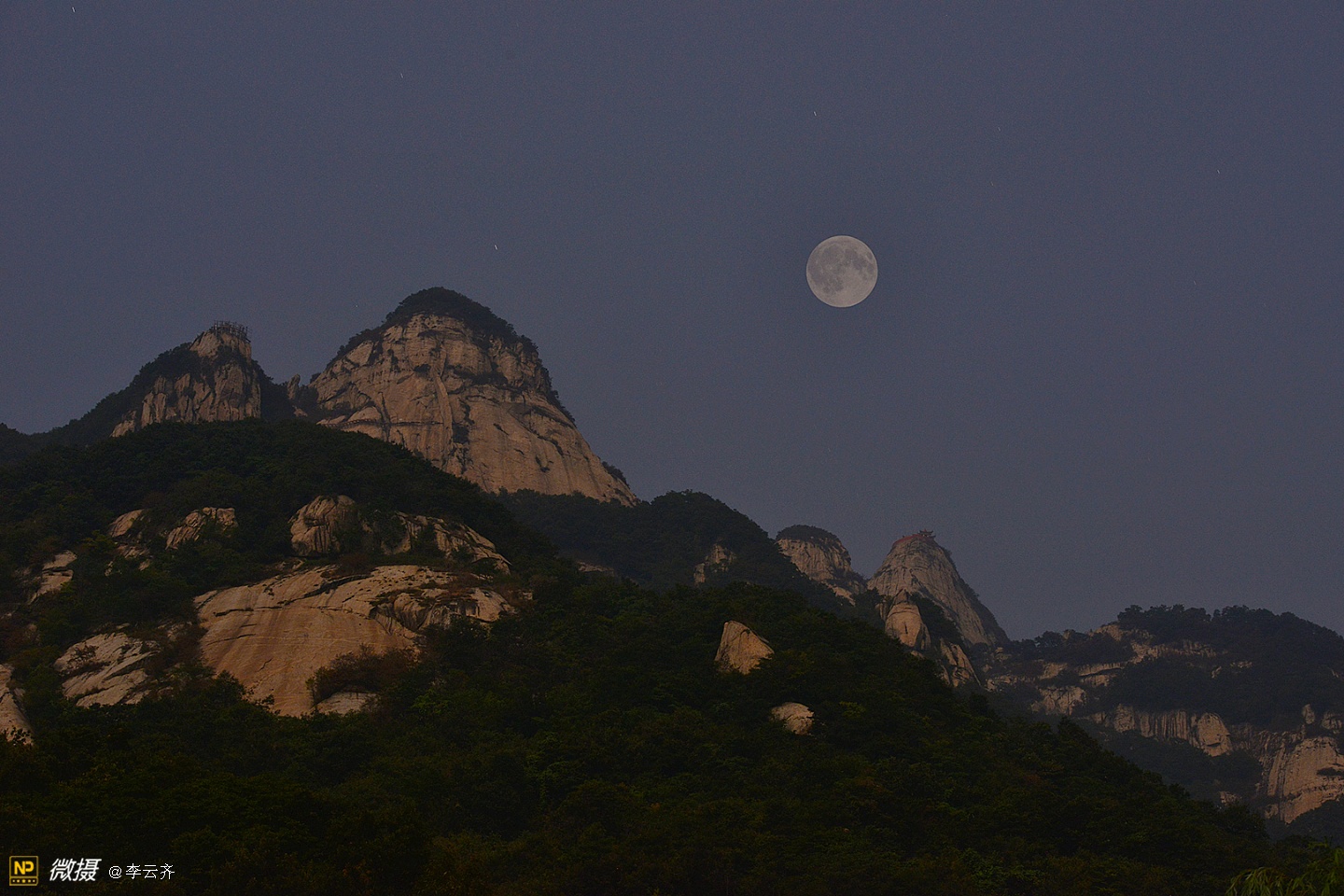 仙 道 观 月无边夜空却蓝幕,万里丘峦竟绿树;着色何须神笔力,仙道素衣笑玉兔。