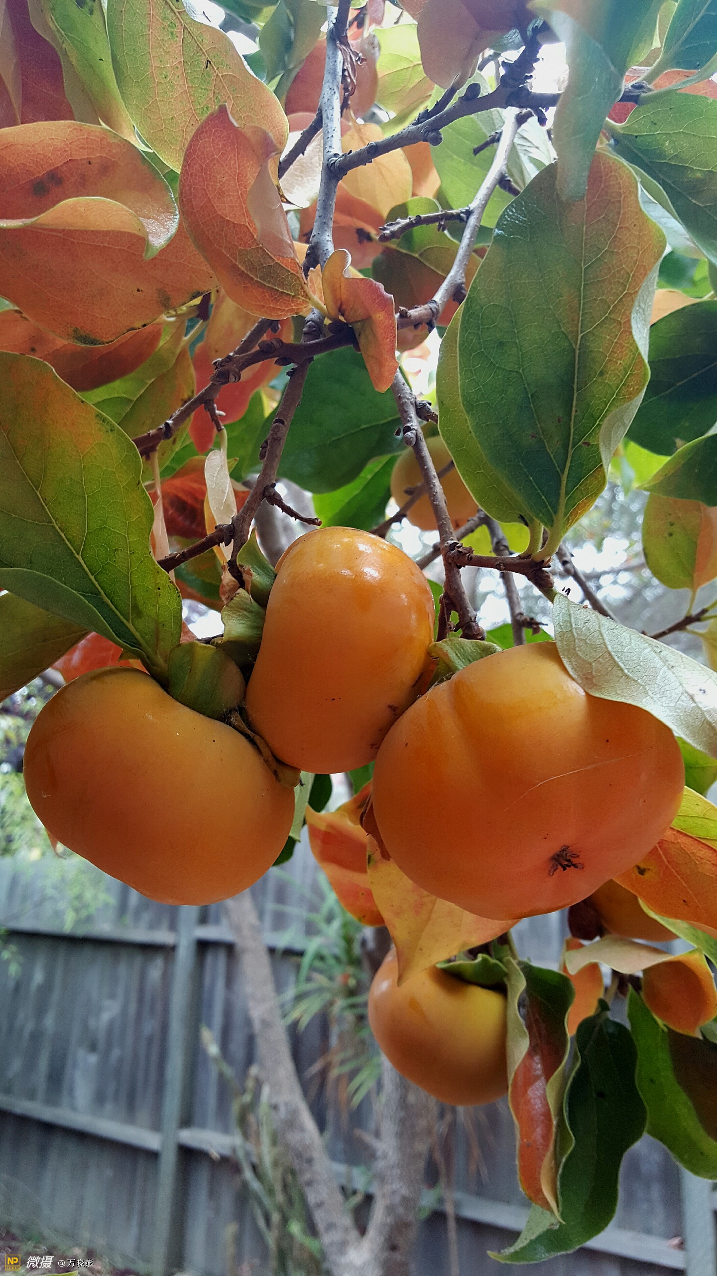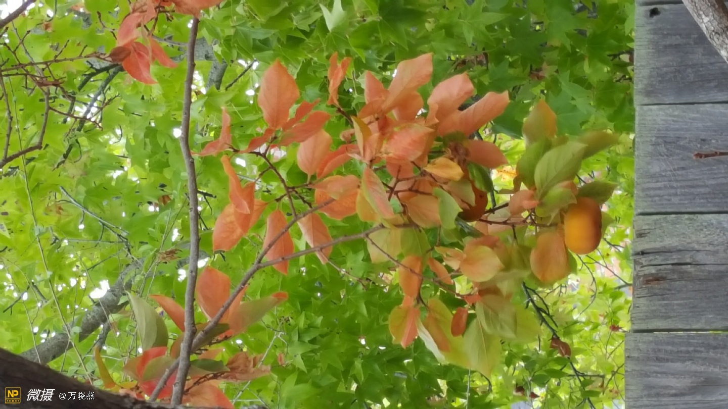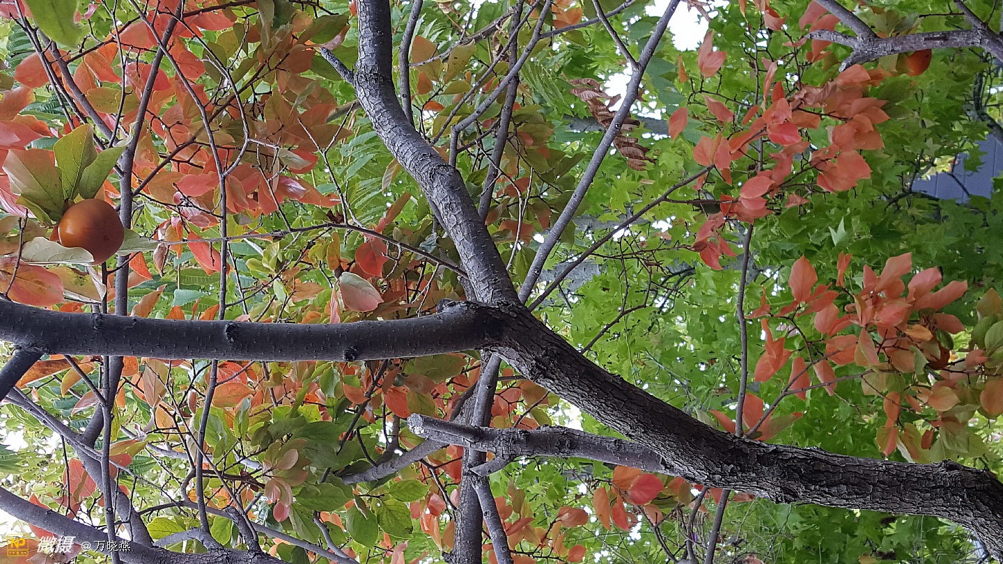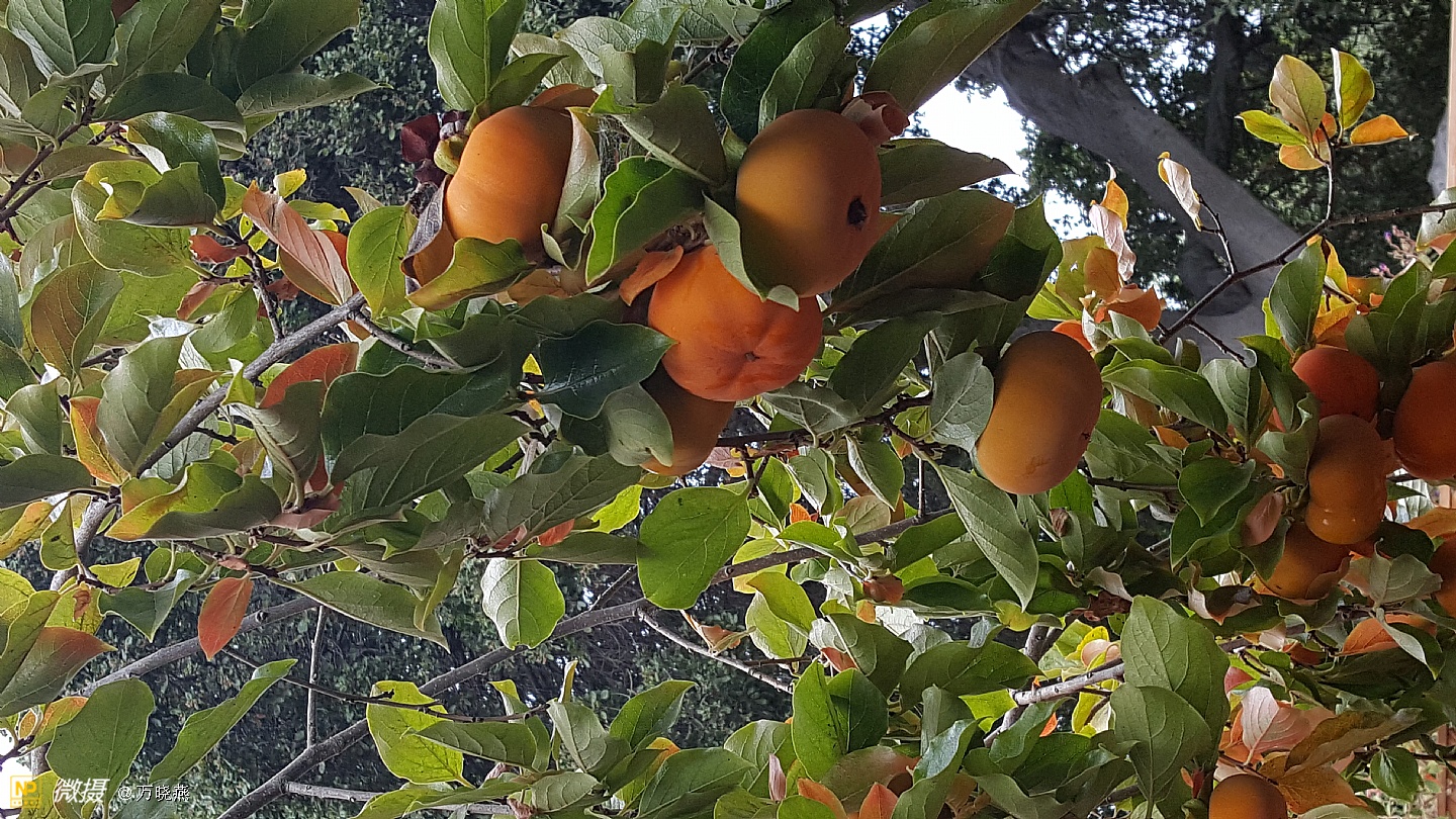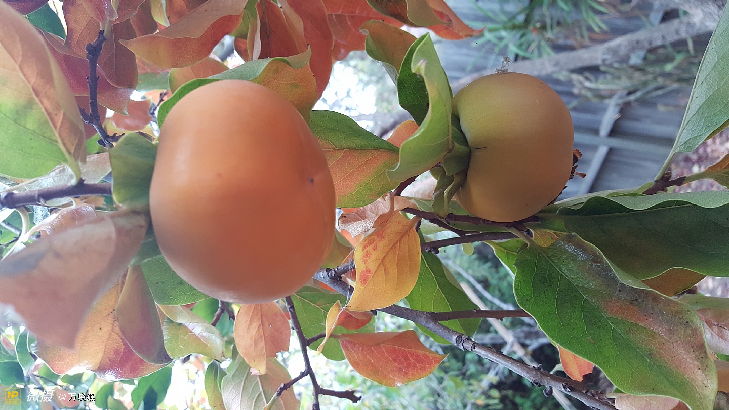 走进郭老家的后花院真是满园秋色! 红红的,大大的,圆圆的,美丽的柿子叫人直流口水,别看它硬硬的,可咬起来却嘣嘣的脆、甜甜的....看着这些柿子不禁让人感叹,时光的流逝、相当初它只是一棵小树丫,二十多年长成别致的大树! 郭老在一旁叙述着陈年往事....往事里的孩子,异国他乡里宝岛情
