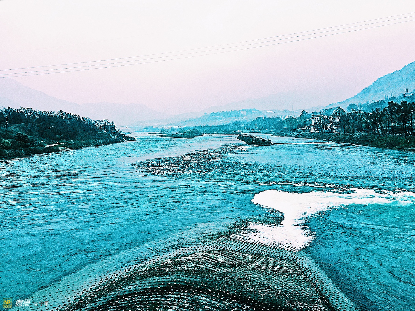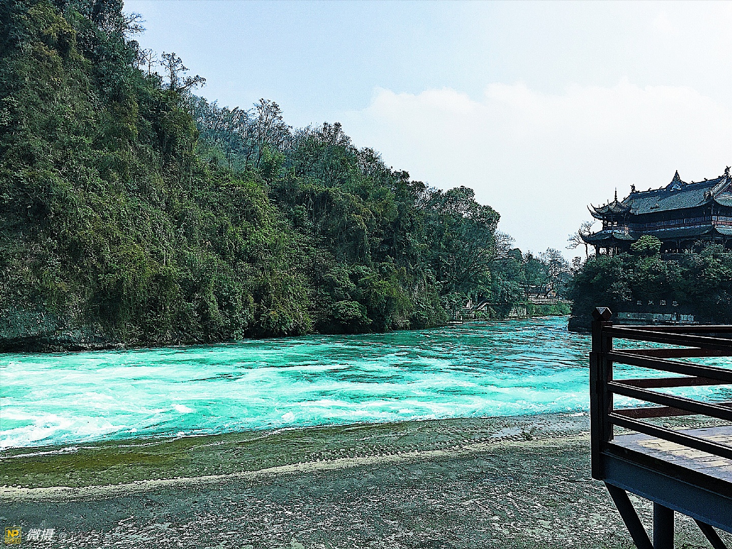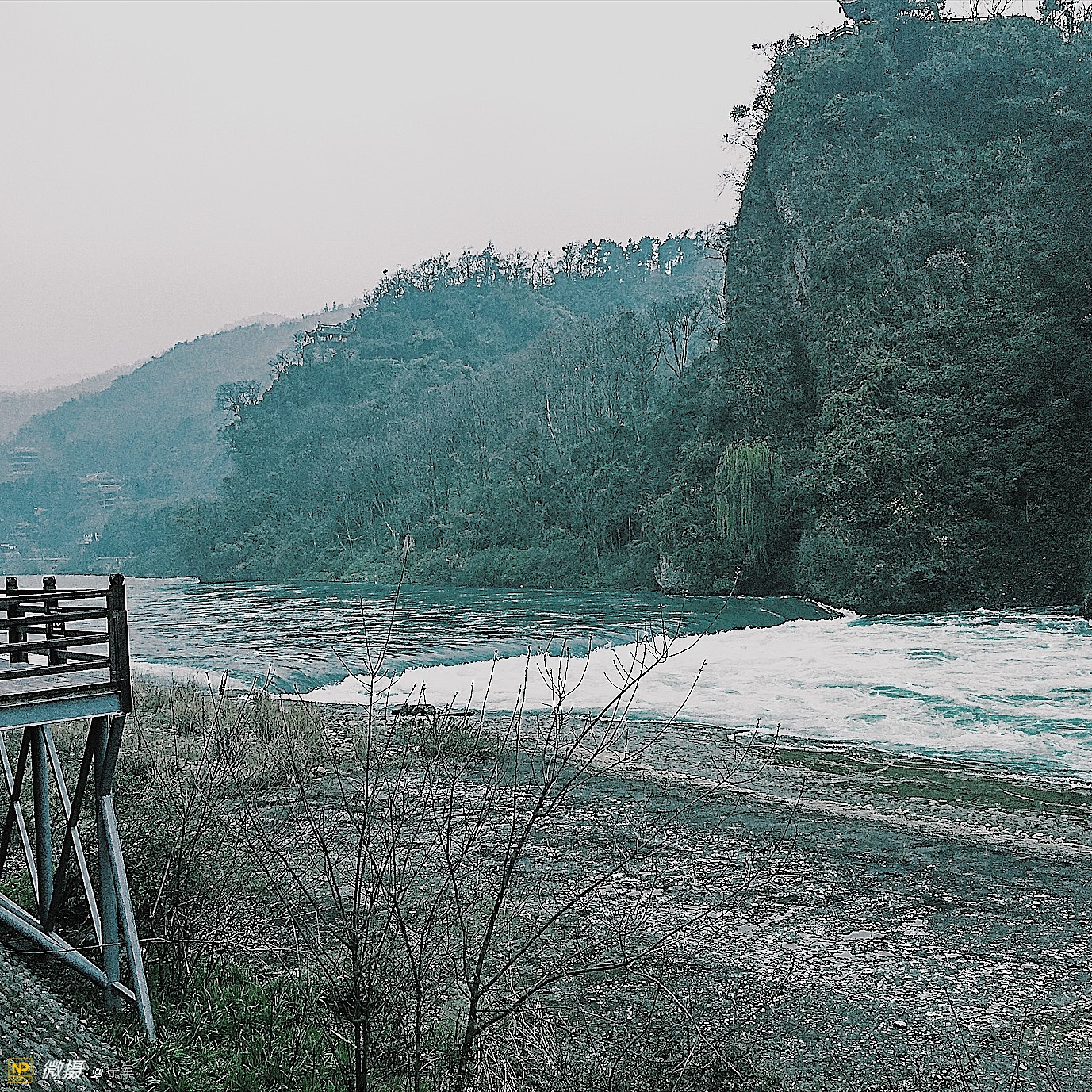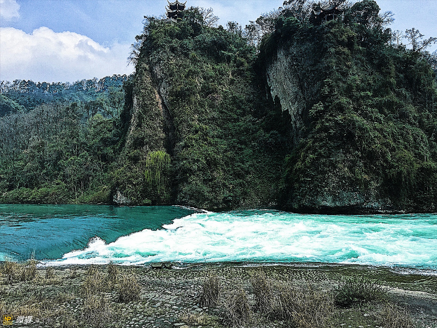 湍急的江水奔流而过。