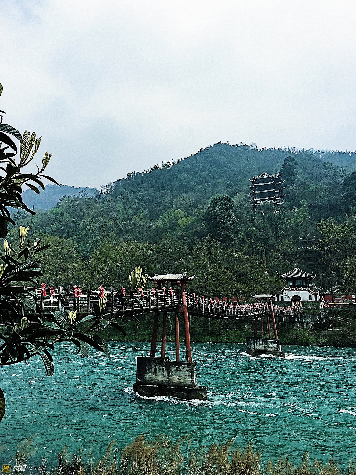 安澜索桥安澜索桥又名“安澜桥”、“夫妻桥”。位于都江堰鱼嘴之上,横跨内外两江,被誉为“中国古代五大桥梁”,是都江堰最具特征的景观。