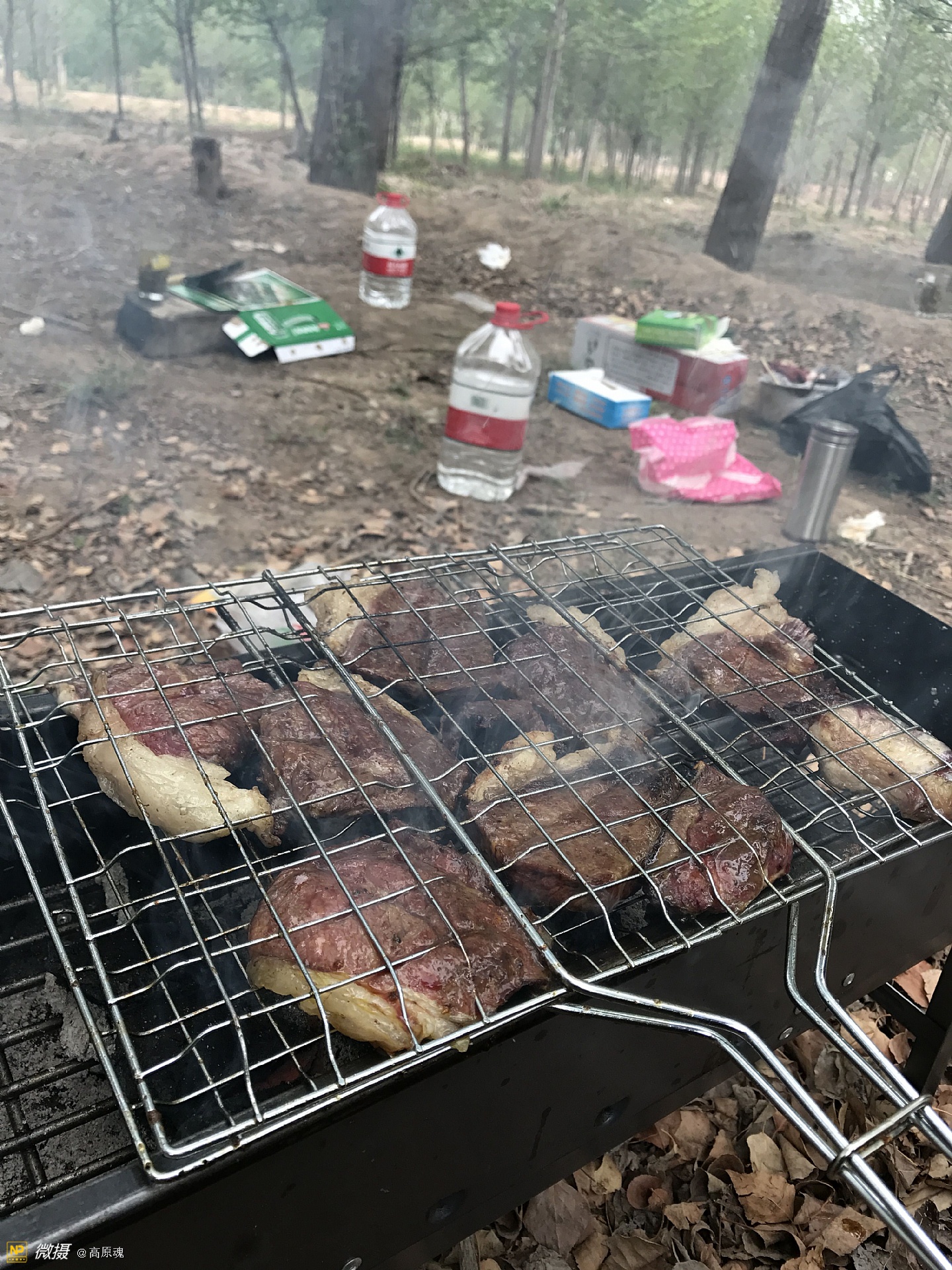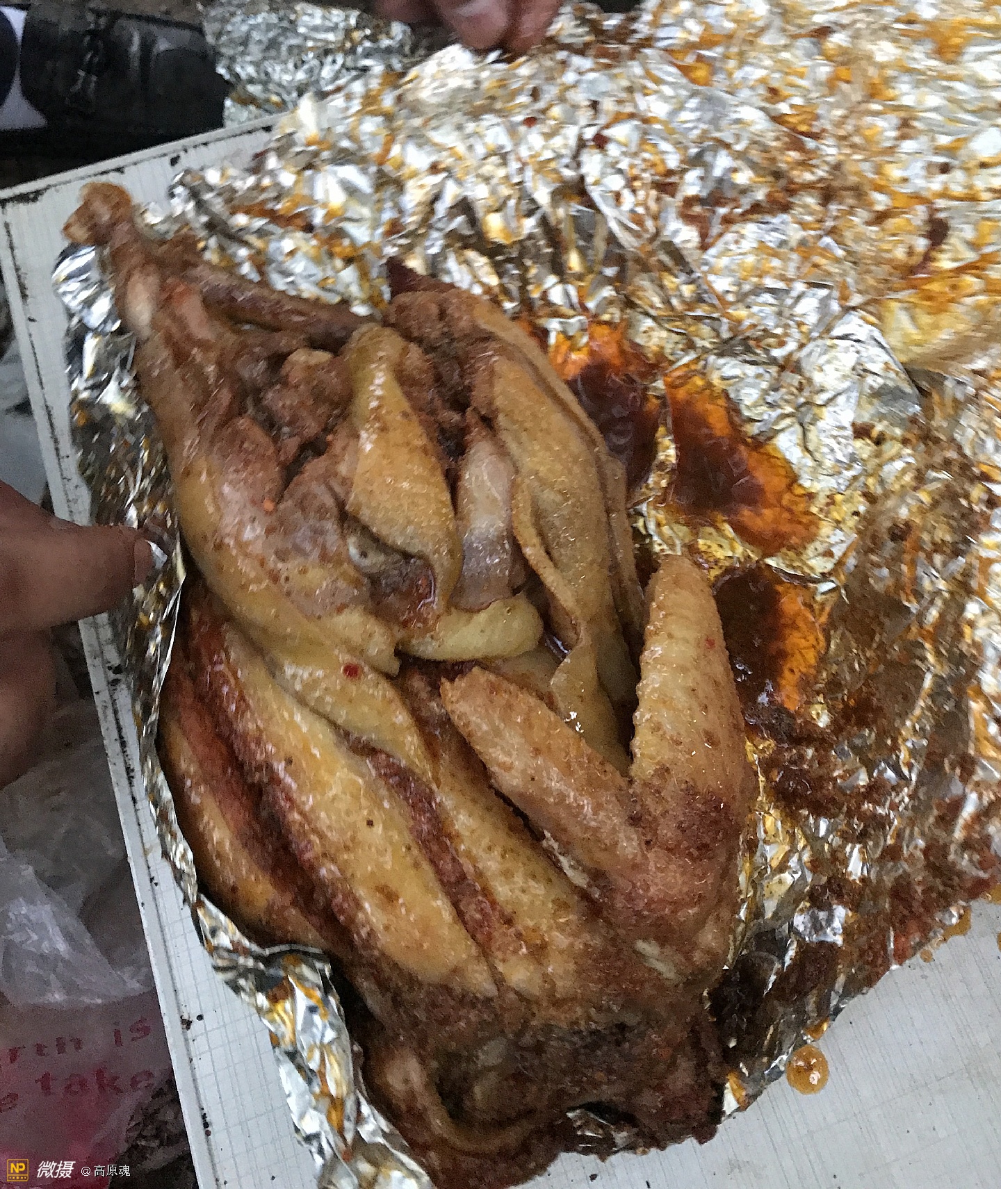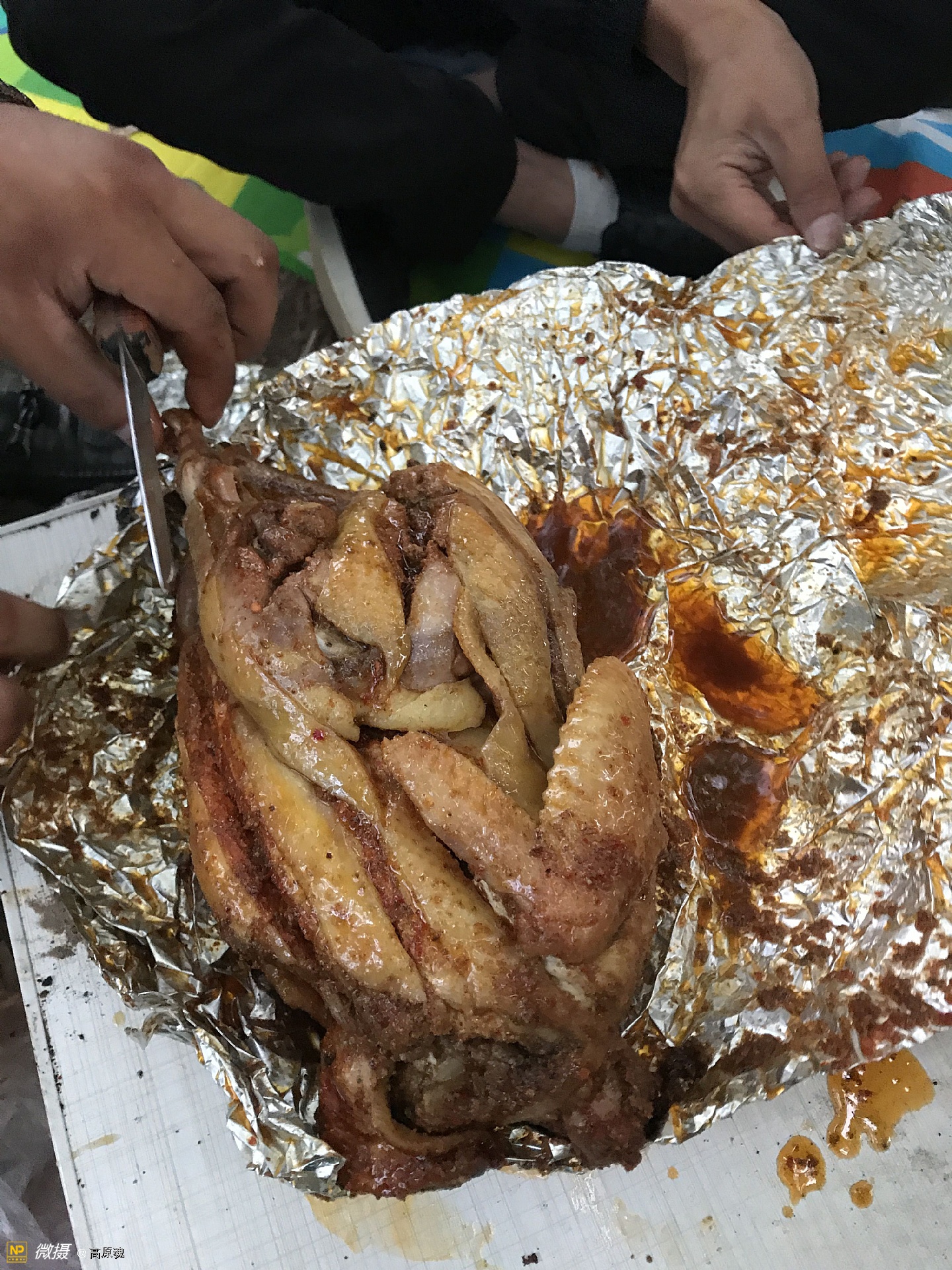 将鸡、牛羊肉用锡纸包好,掩埋在土坑里。约等一小时就可以享用了