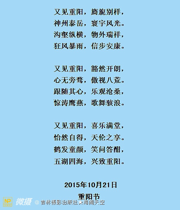 《又见重阳》 图文【原创】/吉林摄影出版社★海阔天空