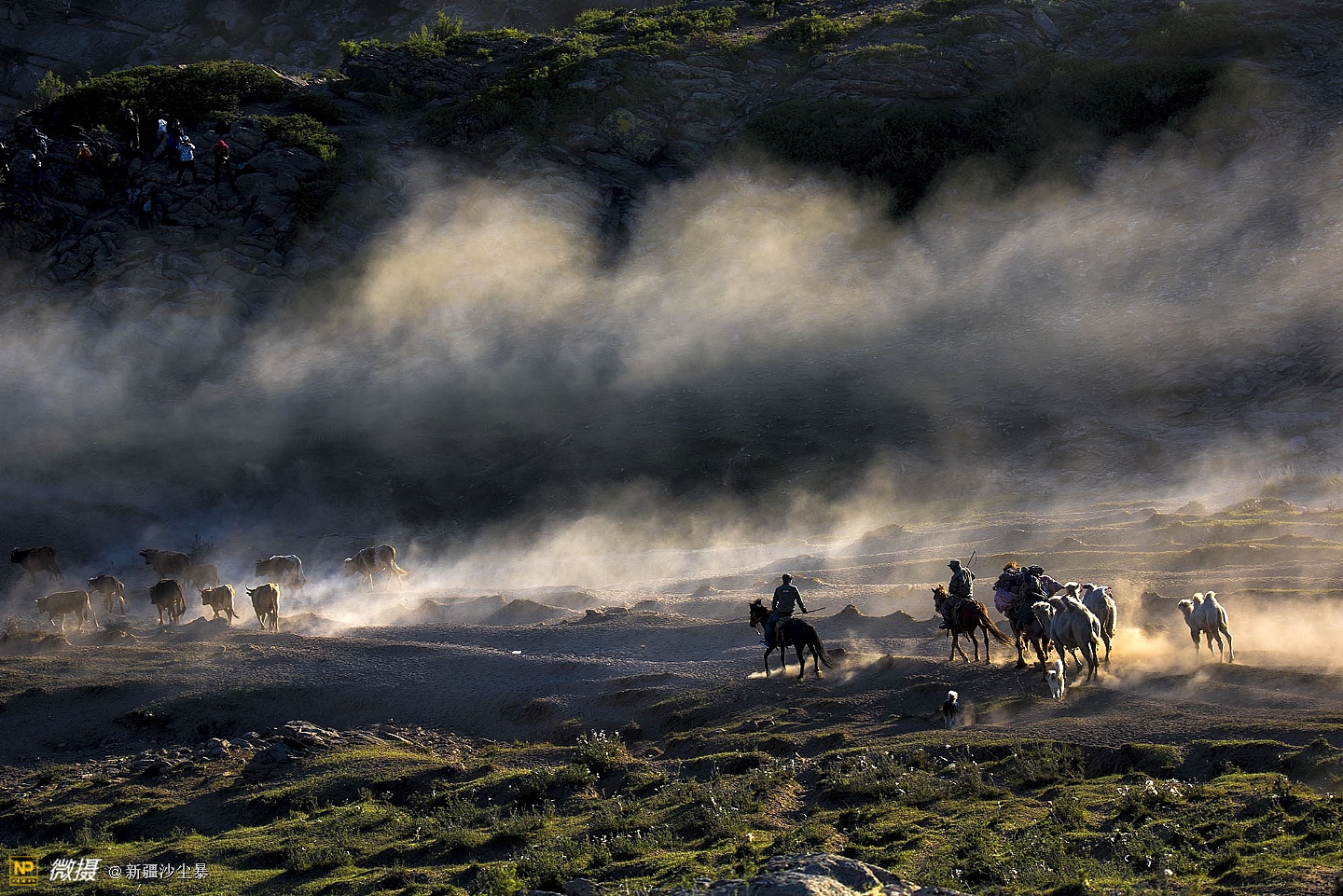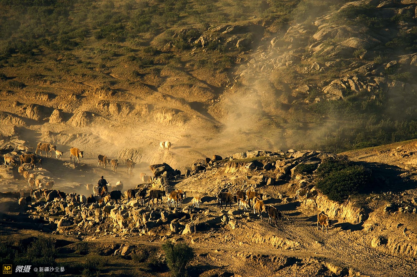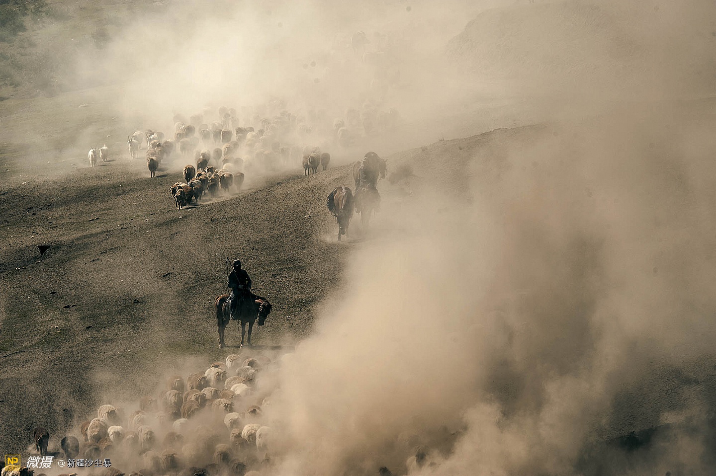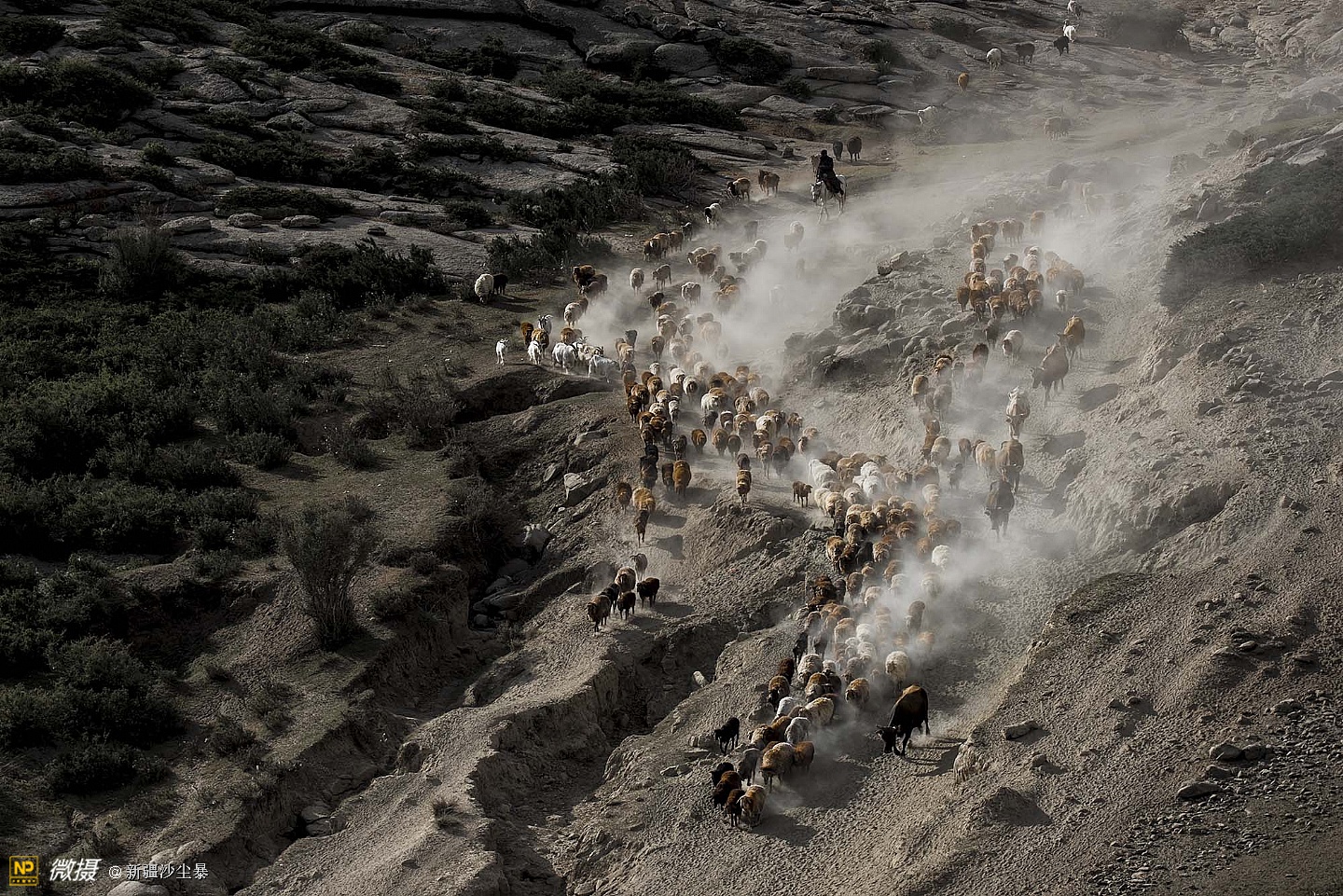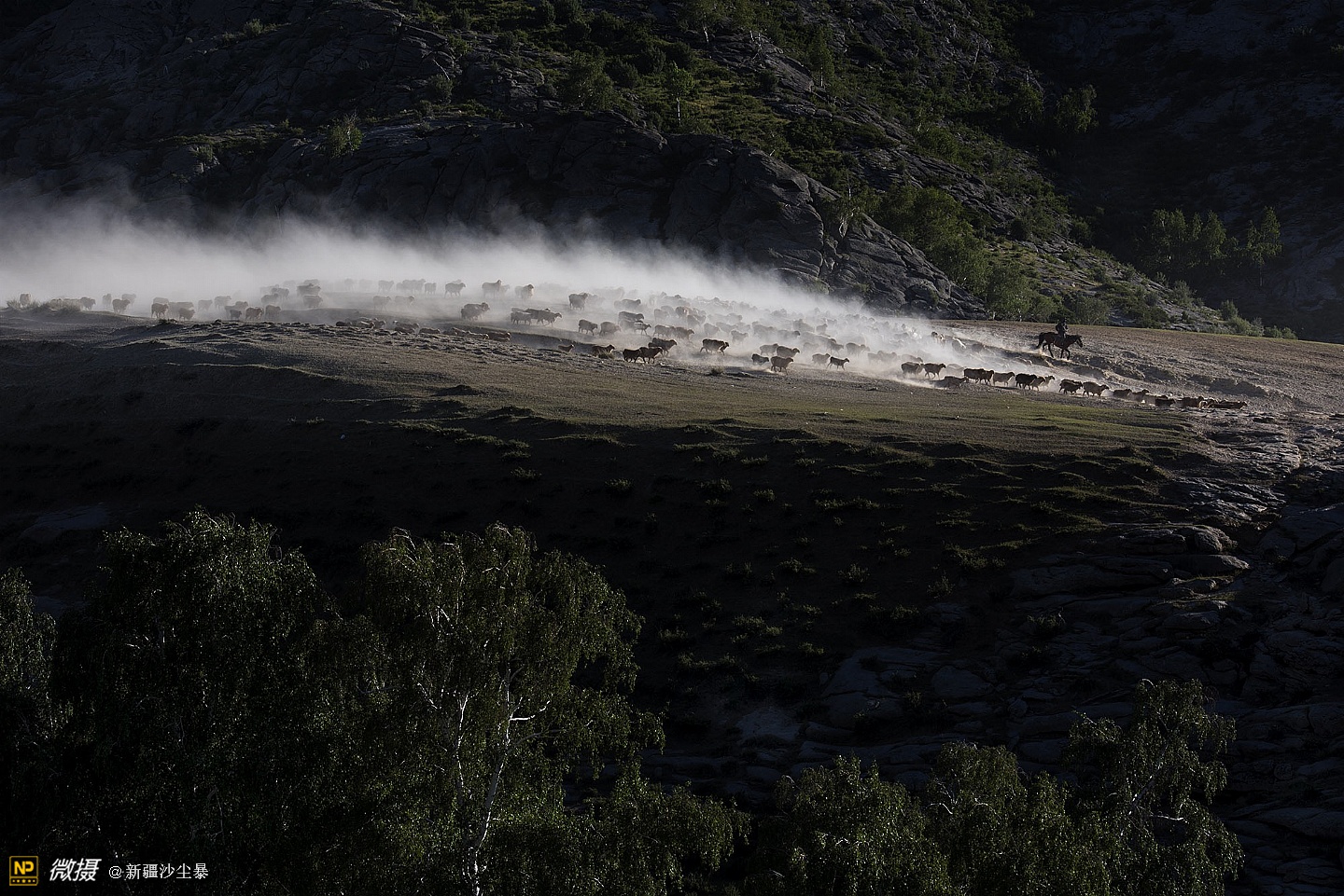 出征前,好几天没下雨。牧道上很快被千军万马踩踏出滚滚的烟尘,犹似燃烧的火焰升腾在深山峡谷中,震撼壮美!(文字韩栓柱)