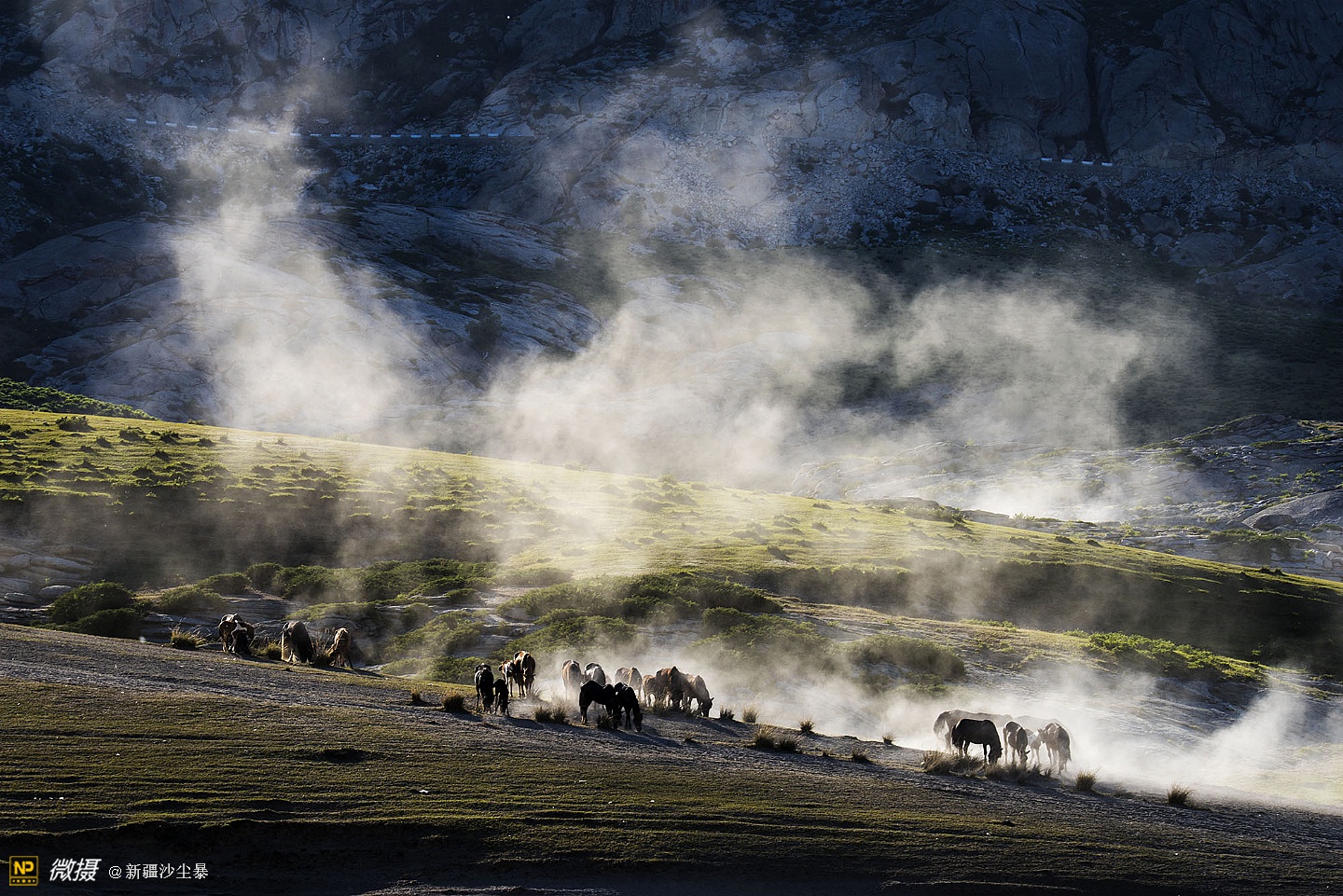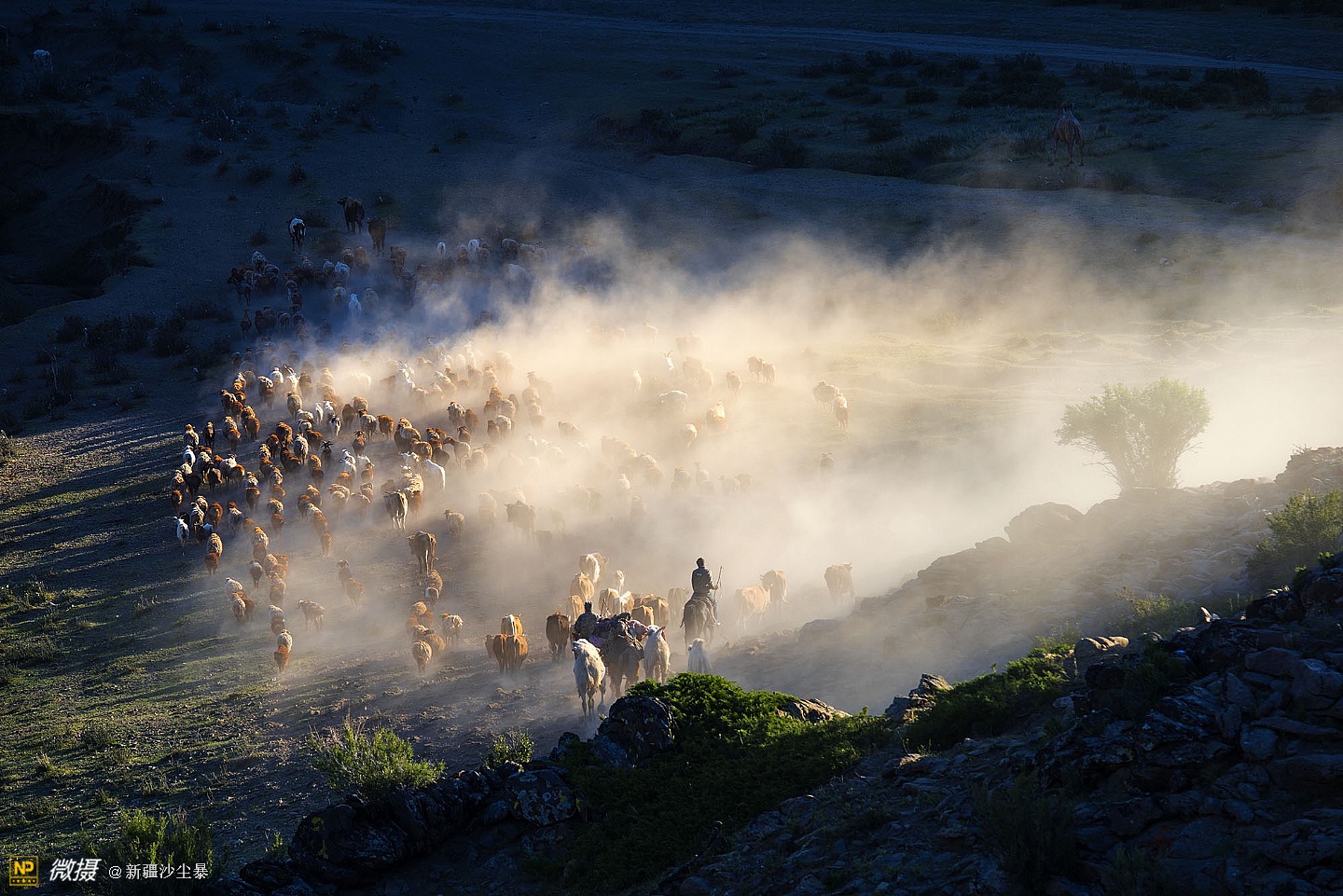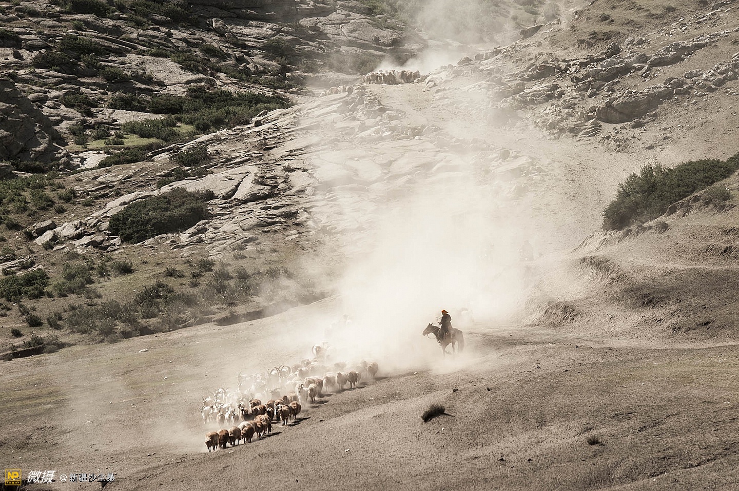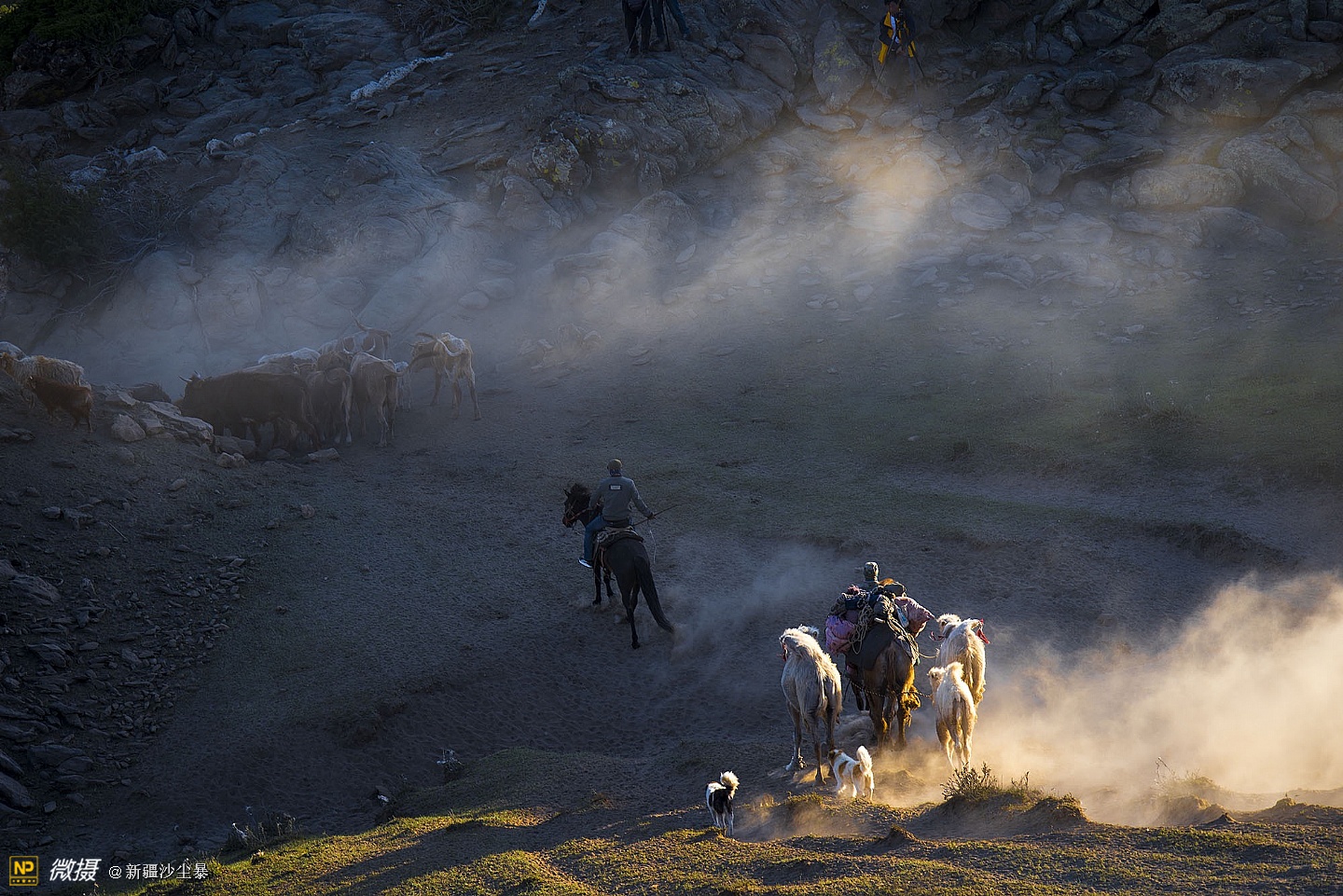 出征前,好几天没下雨。牧道上很快被千军万马踩踏出滚滚的烟尘,犹似燃烧的火焰升腾在深山峡谷中,震撼壮美!(文字韩栓柱)