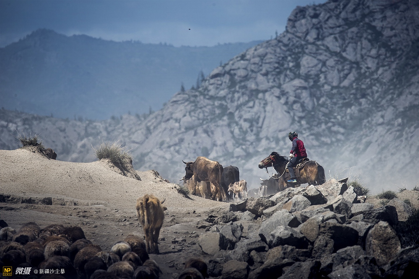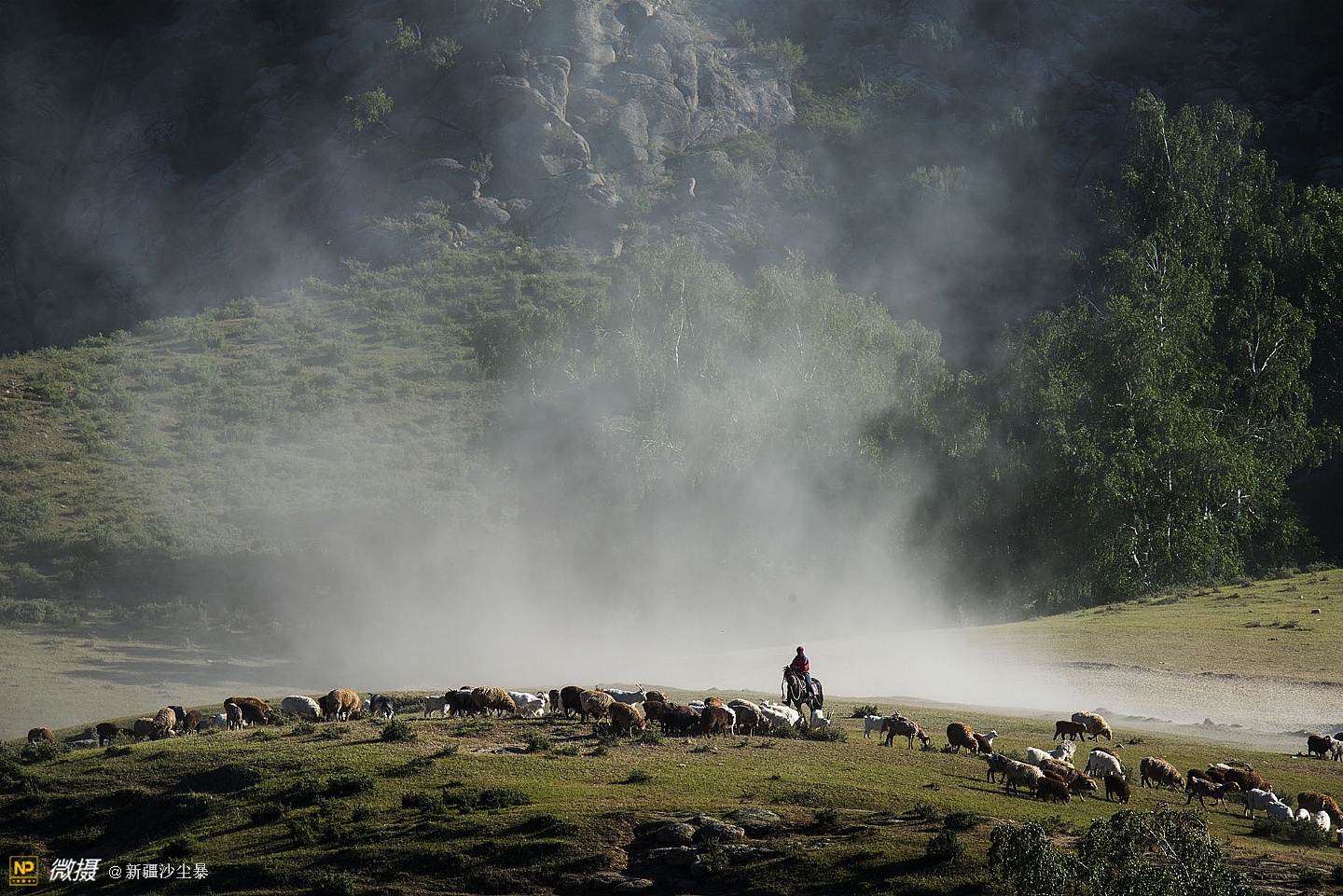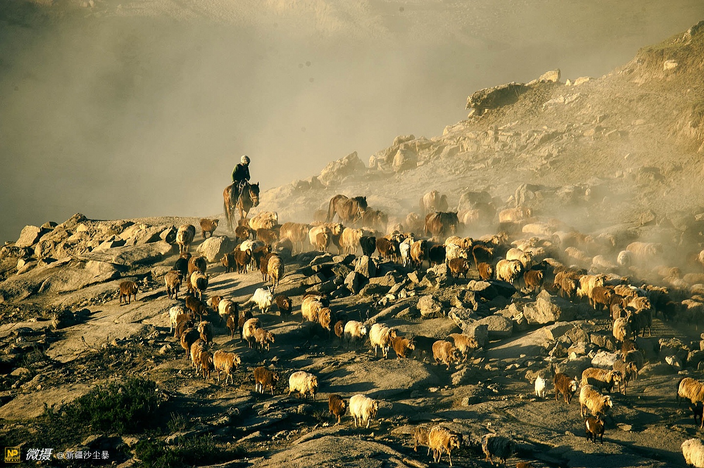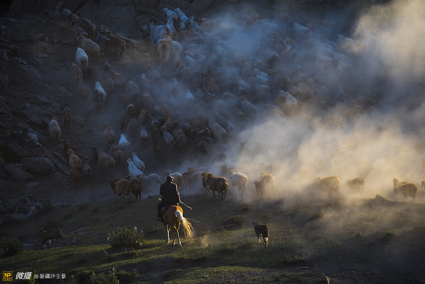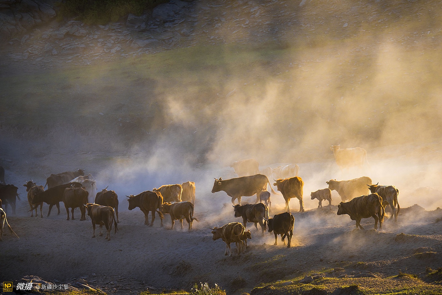 出征前,好几天没下雨。牧道上很快被千军万马踩踏出滚滚的烟尘,犹似燃烧的火焰升腾在深山峡谷中,震撼壮美!(文字韩栓柱)