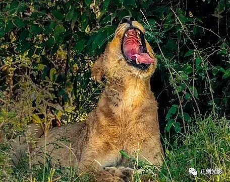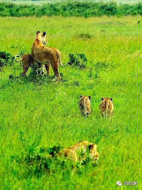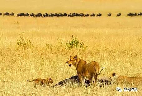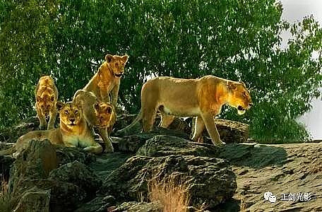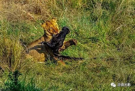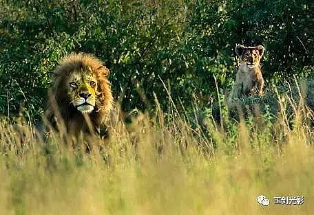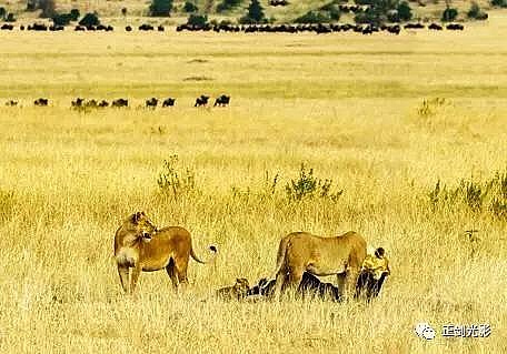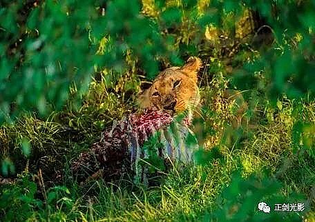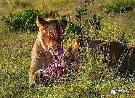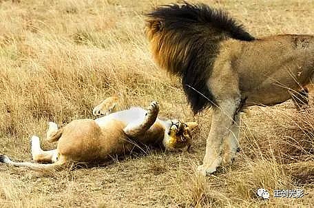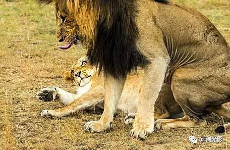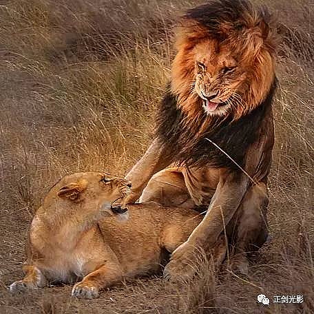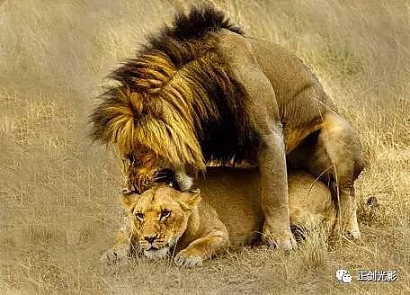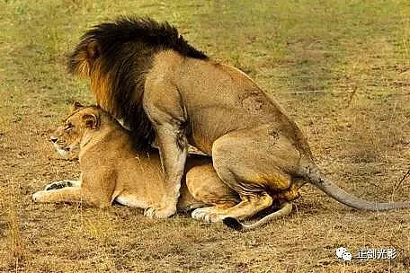 肯尼亚狮群常在稀树灌木层,或草林密集的地方隐蔽,以母狮群猎食为主。 当发现猎物,各有分工:其中,由一母狮托管其它小狮子,并看护、喂养,其它母狮以围捕方式,形成一个扇形包围圈,把猎物围在中间,慢慢接近,在可控距离内突然发起攻击,以迅雷不及掩耳之势,凶猛扑向猎物,用前爪指狠狠撕扯猎物,一剑锁喉窒息呜呼…… 雄狮一般每天早晚巡视领地,并通过咆哮、尿液气味标记出地界。进食有绝对的优先权,然后就是睡觉、交配,休息、交配…… 猛狮猎食时虽然凶猛、狰狞不可一世,但交配时却温情似水,体贴入微,关怀备至。性交时雄狮低吼,预示着高潮四射的时刻到了,并“狠狠”的咬住雌狮的颈部皮毛,雌狮兴奋时也会“大”吼一声,假惺惺的反咬一口,温情的仰倒撒欢或侧倒陶醉享受一番。猛狮交配高潮只有15秒左右,休整5—10分钟,可再进行下一次交配。另它们高潮时旁若无人,随便拍摄…… ——图/文:郑健