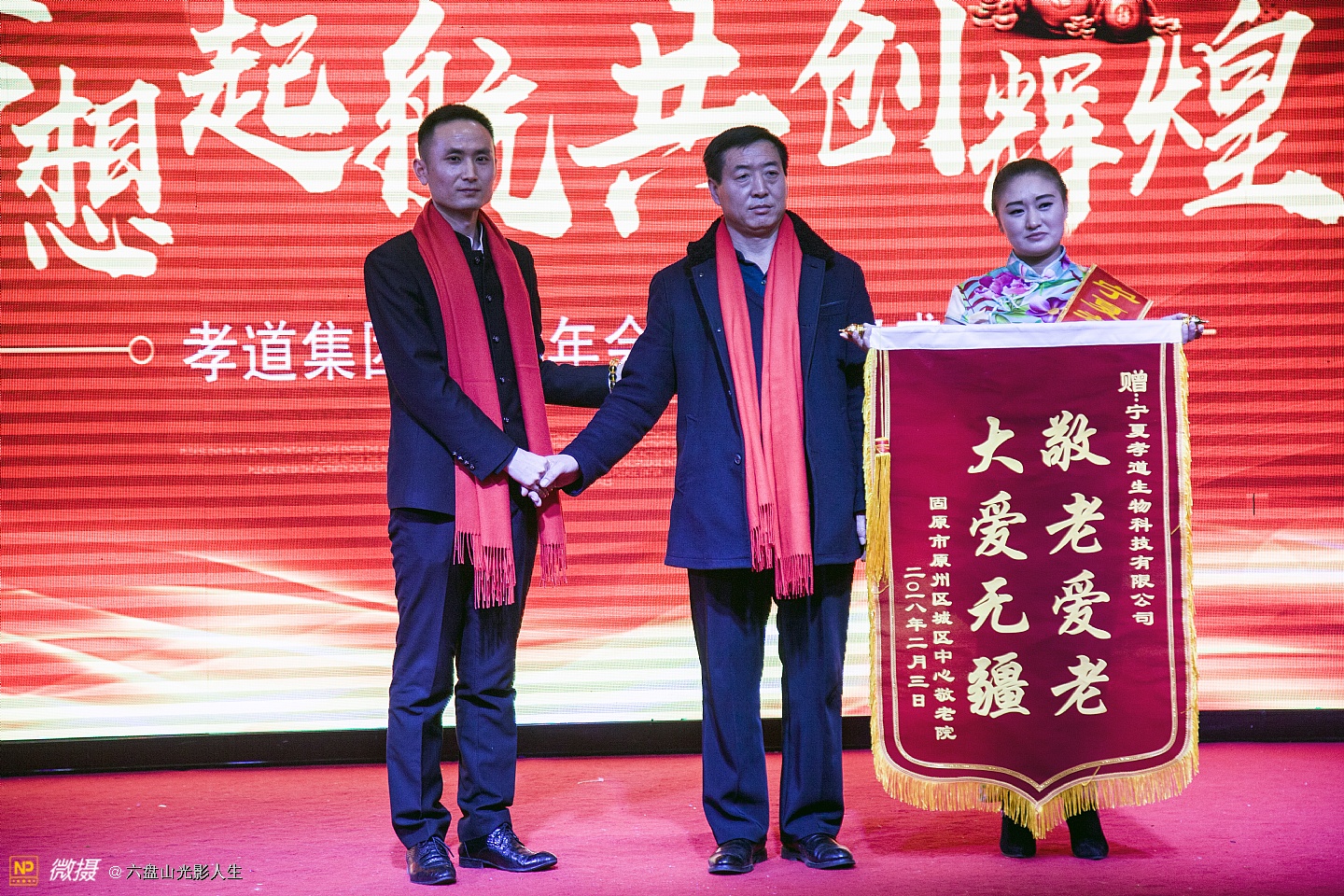 2月4日,宁夏孝道生物科技公司举行年会,总结安排工作,表彰奖励先进,表演文艺节目,举办健康讲座等,年会在祥和喜庆的气氛中进行。