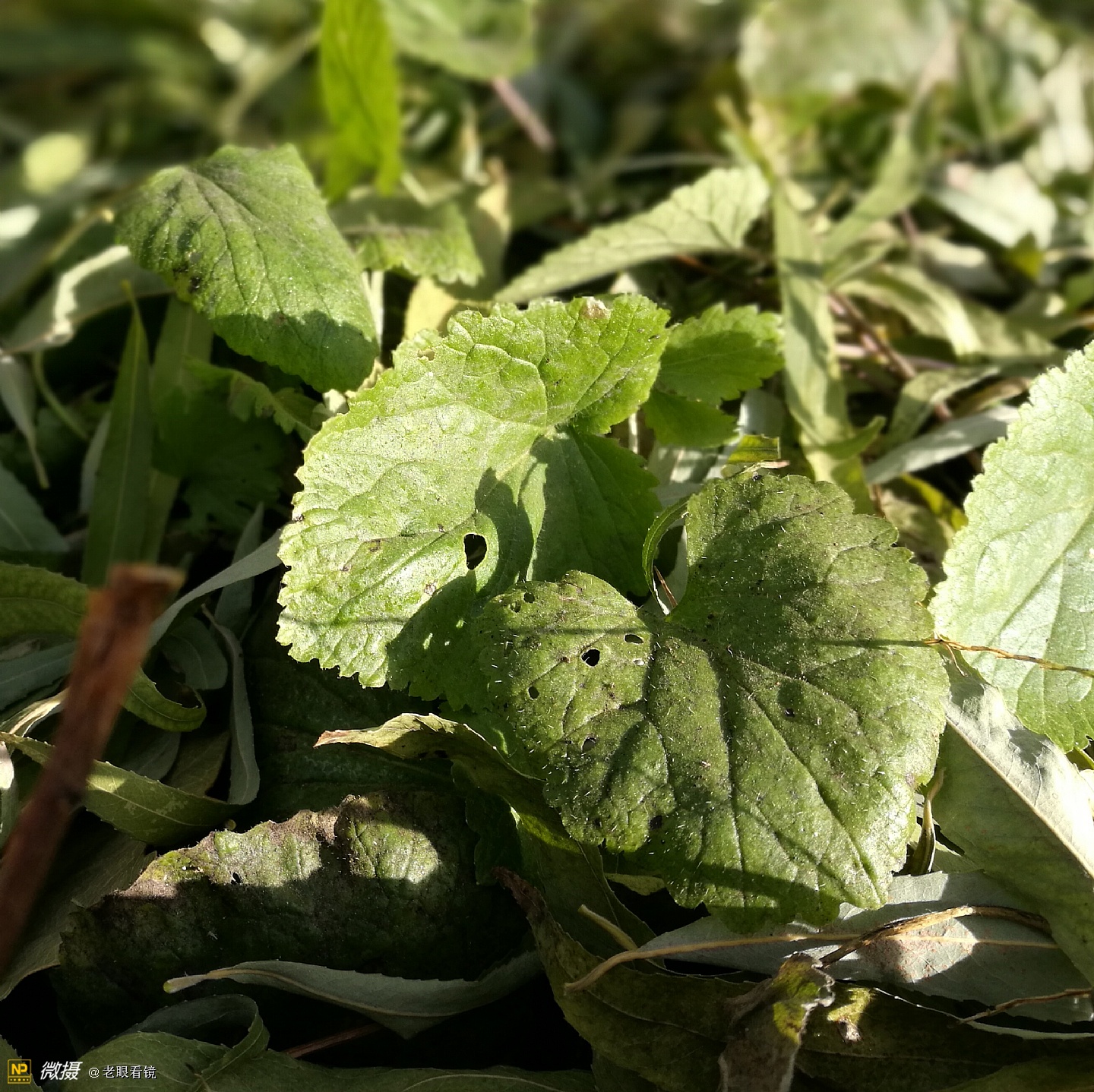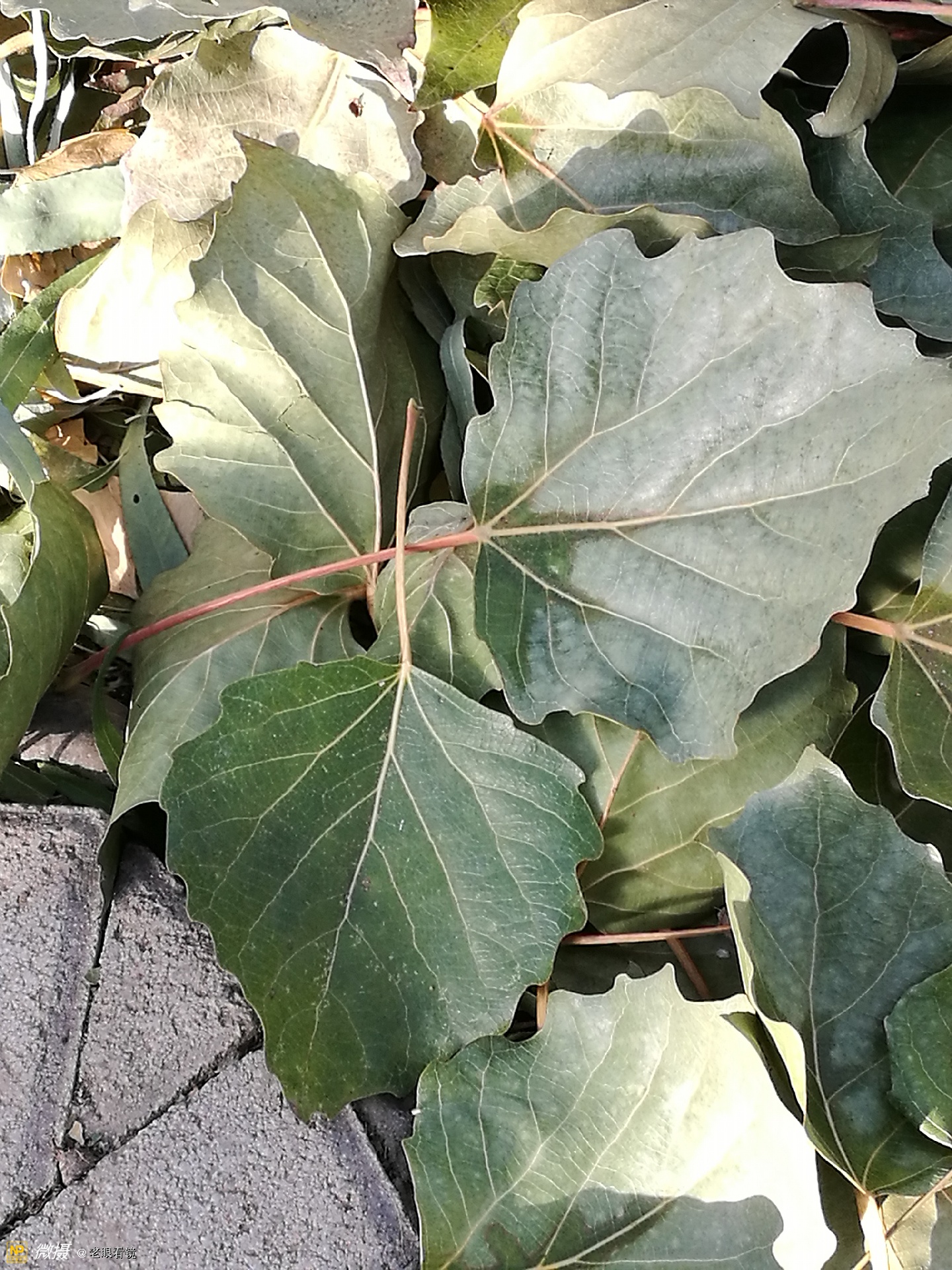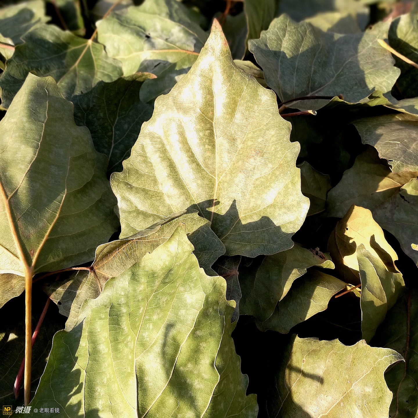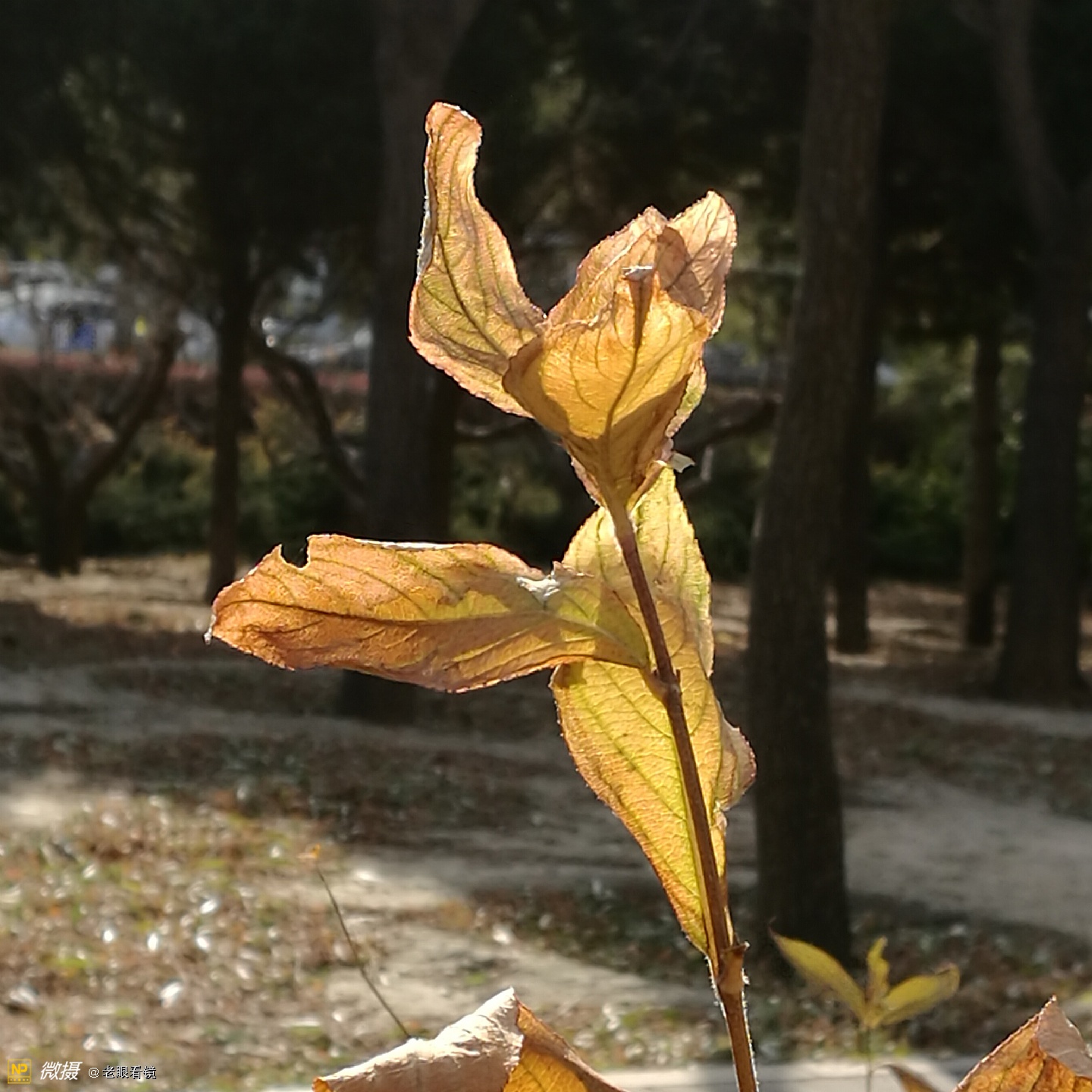 _-地上的草虽然都已经枯萎了,但是在朝阳的树根儿处,依然能够看到绿色的我不认识的植物,也是草的一个品种吧。