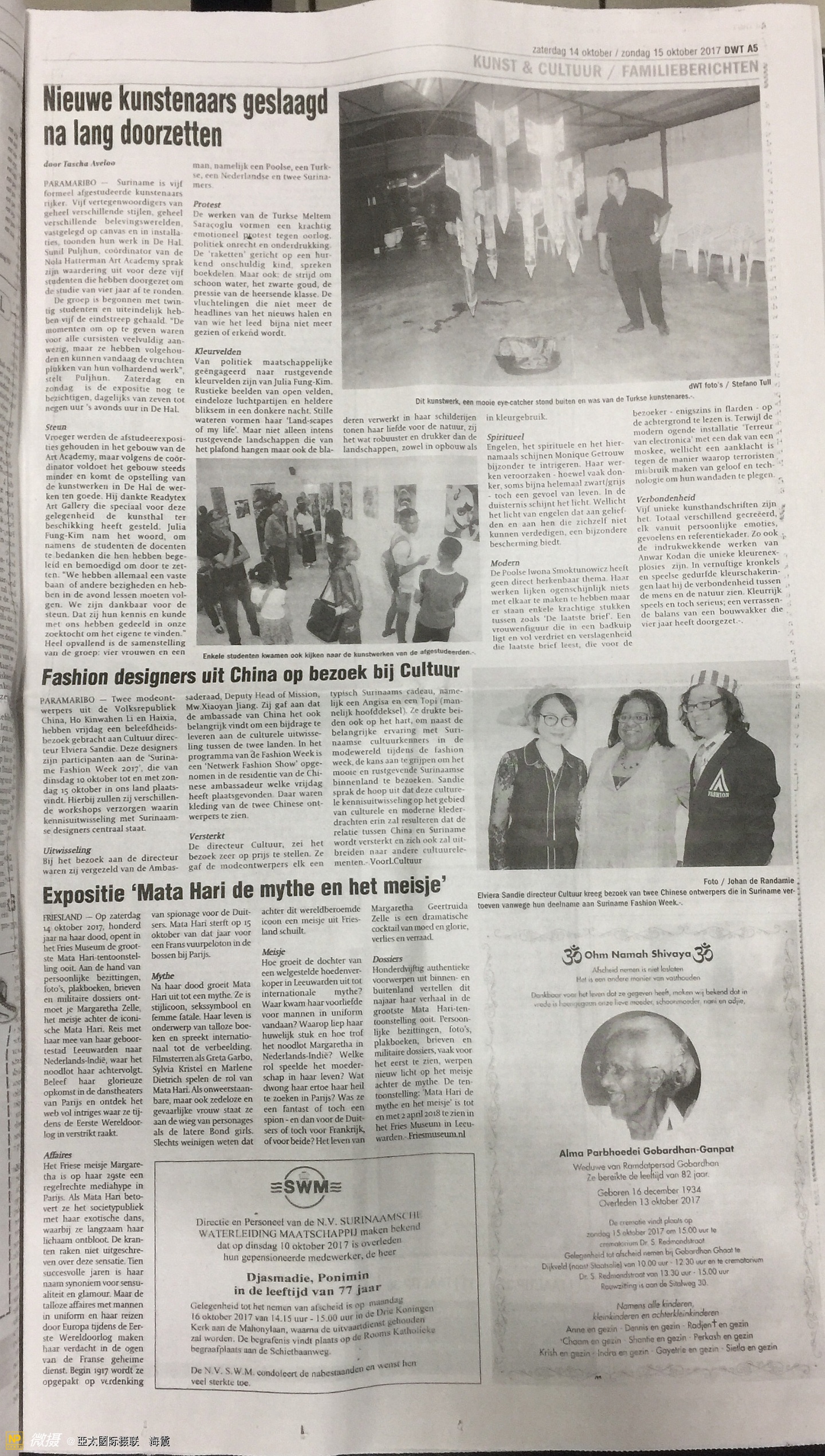 蘇最大的報紙,蘇里南時報刊登了這一消息