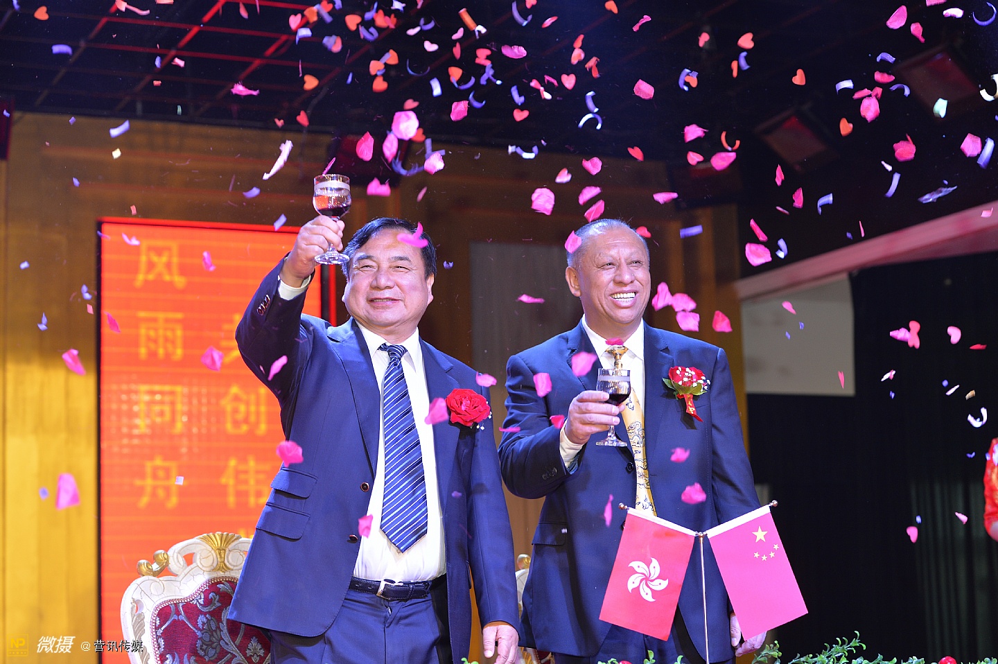 S34:香港华达李晓华主席和东升伟业于爱东董事长举杯庆贺第二次合作成功