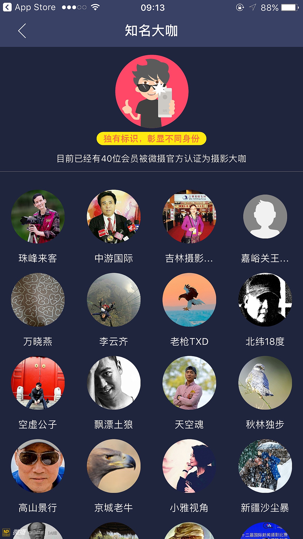 如何才能成为微摄大咖?如何才能参与拍摄世界各地的行动?微摄创始人何世红先生称:一要成为微摄(APP)的用户,上传分享图片在500幅以上,精品作品在50幅以上;二要在微摄手机端上创建自己的摄影交流圈子,成员在100人以上。达到了这些条件,微摄官方会通过专家团评定后正式认证为微摄摄影大咖,方有机会参与这些活动。