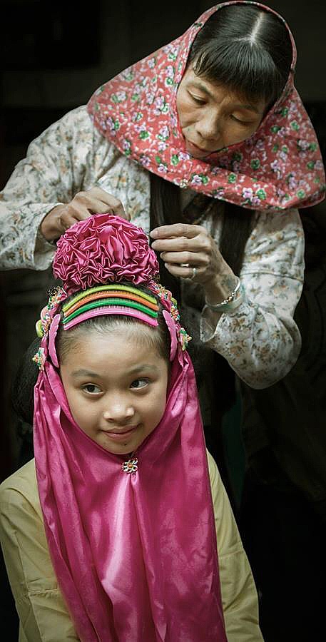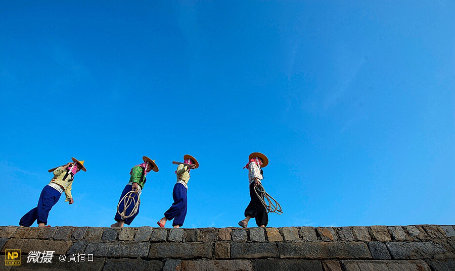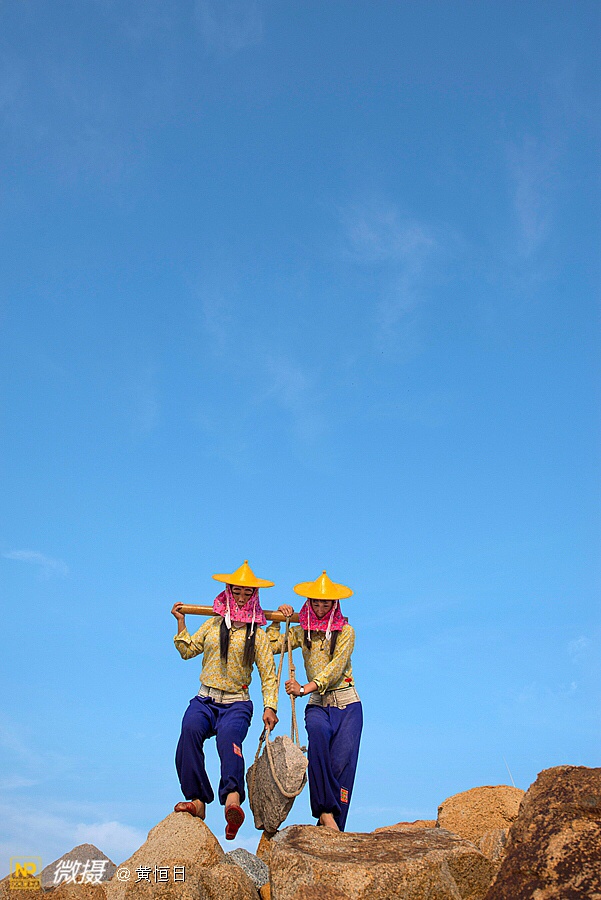惠安女服饰:"封建头,民主肚,节约衣,浪费裤。"——首批国家级非物质文化遗产惠安女穿着的具有古老传统的服饰主要是:头披鲜艳的小朵花巾,捂住双颊下颌,上身穿斜襟衫,又短又狭,露出肚皮,下穿黑裤,又宽又大。这种服饰在全国独具一格,尤为引人注目。具有很强的色彩感染力,被视为"中国服饰精华的一部分"。人们把她们的花头巾、短上衣、银腰带、大筒裤,统称为:"封建头、节约衫、民主肚、浪费裤"。