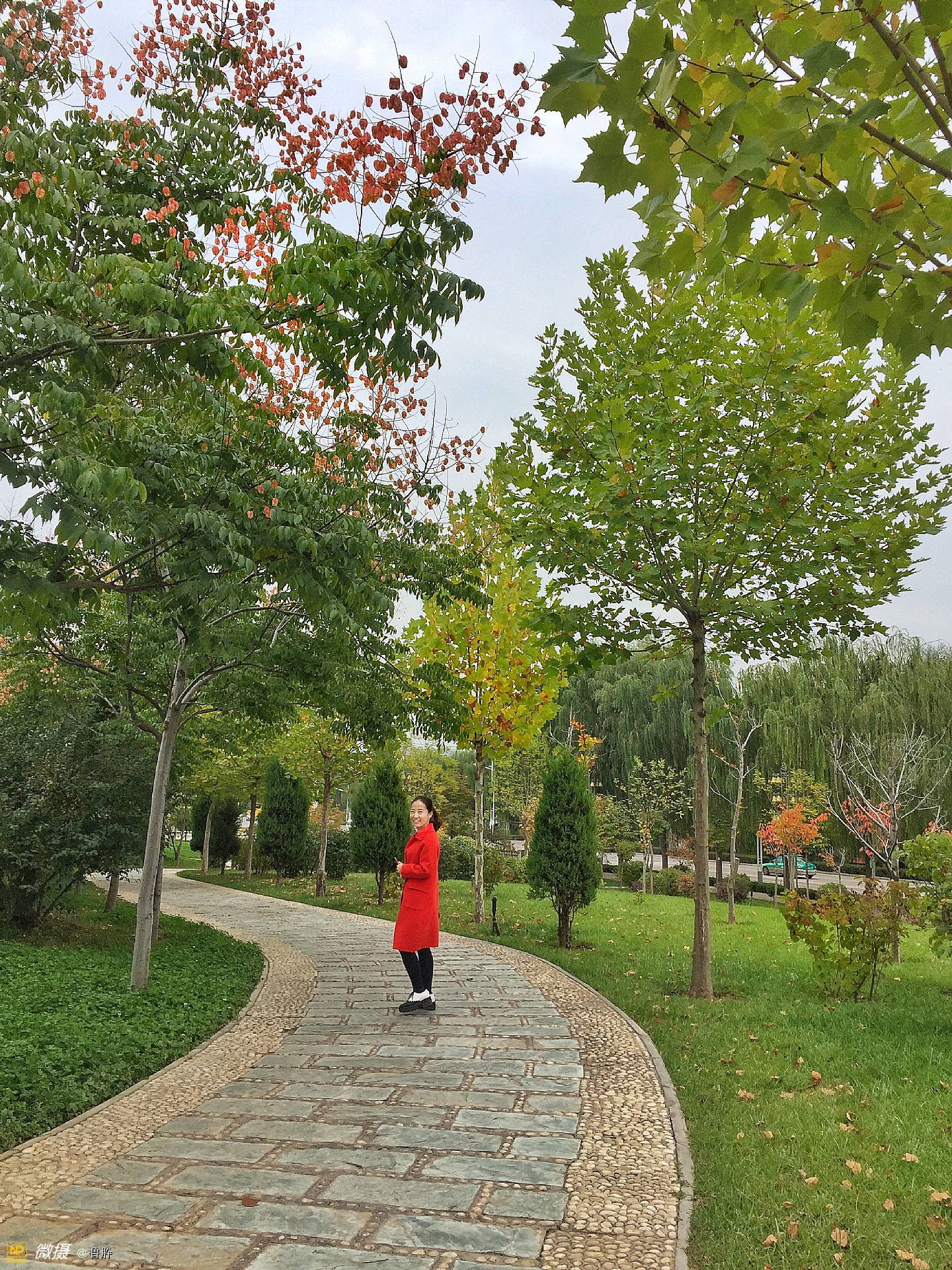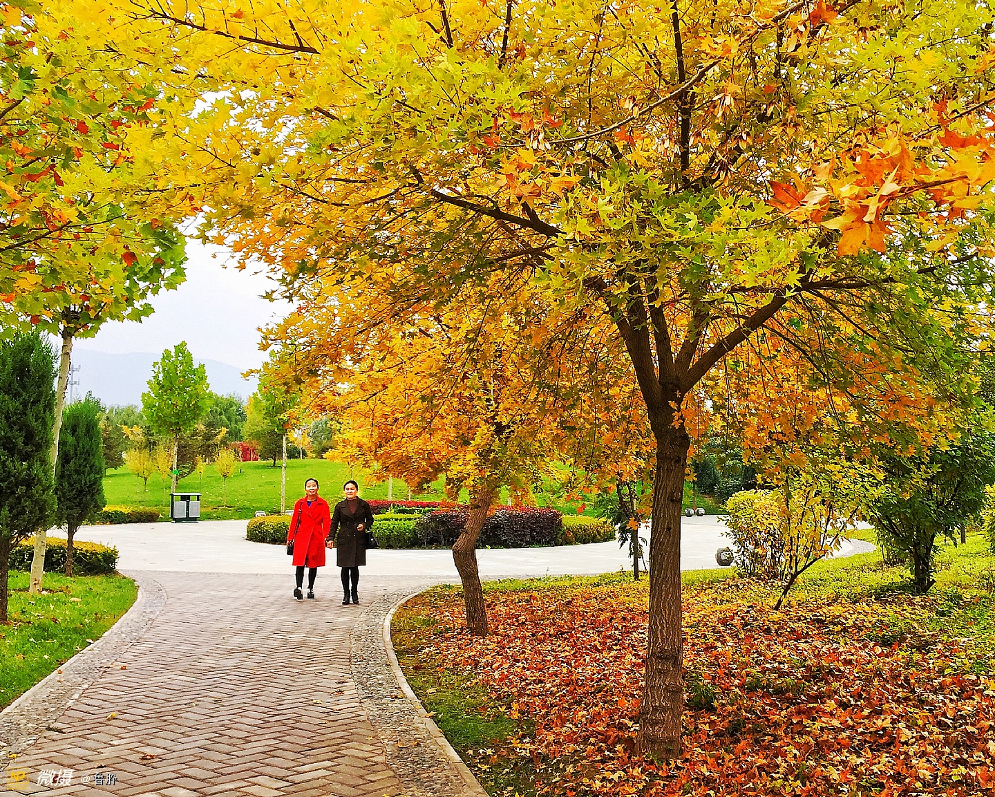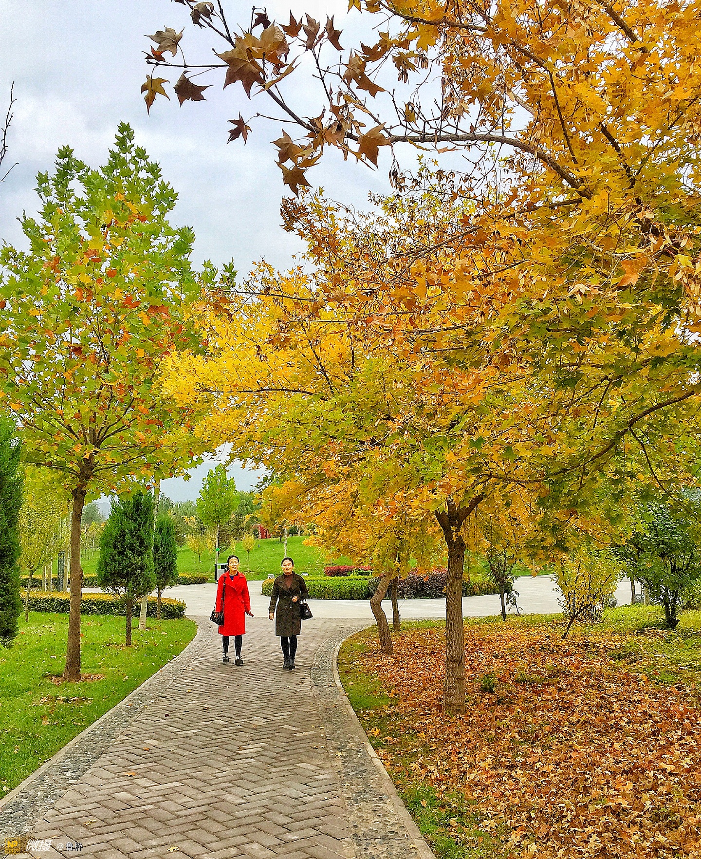 我们走着聊着,一边赏公园秋色,一边聊久别心事!