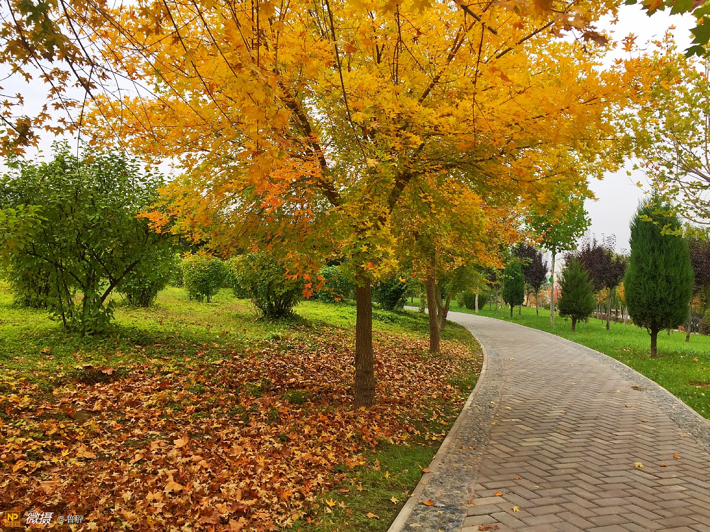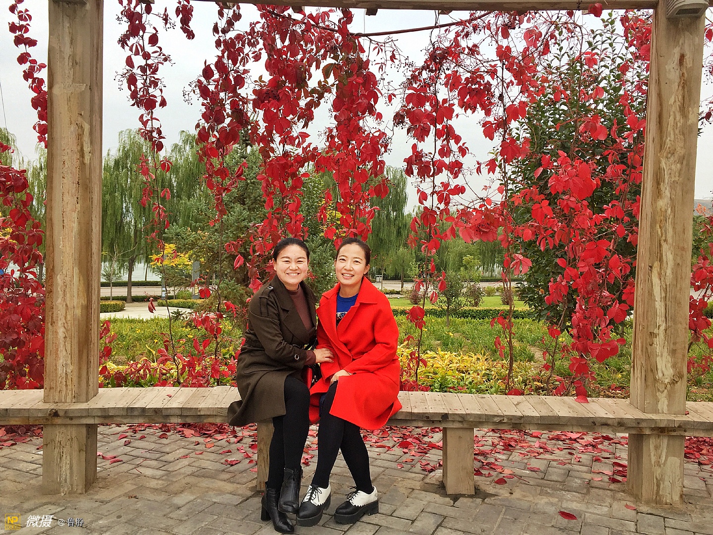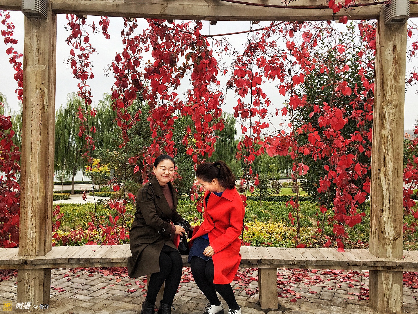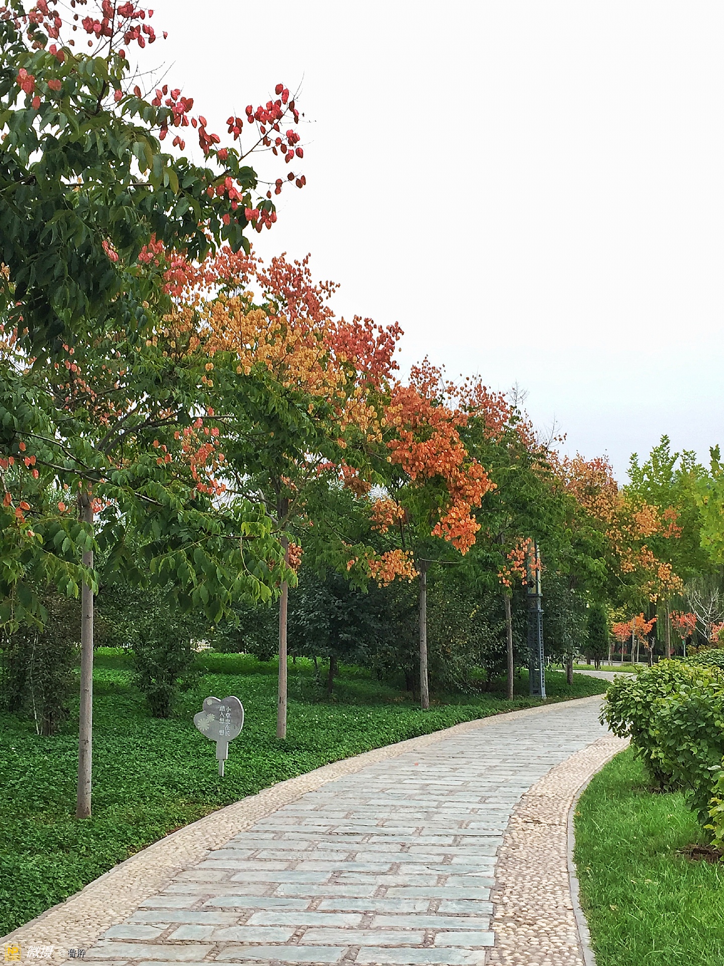 我们走着聊着,一边赏公园秋色,一边聊久别心事!
