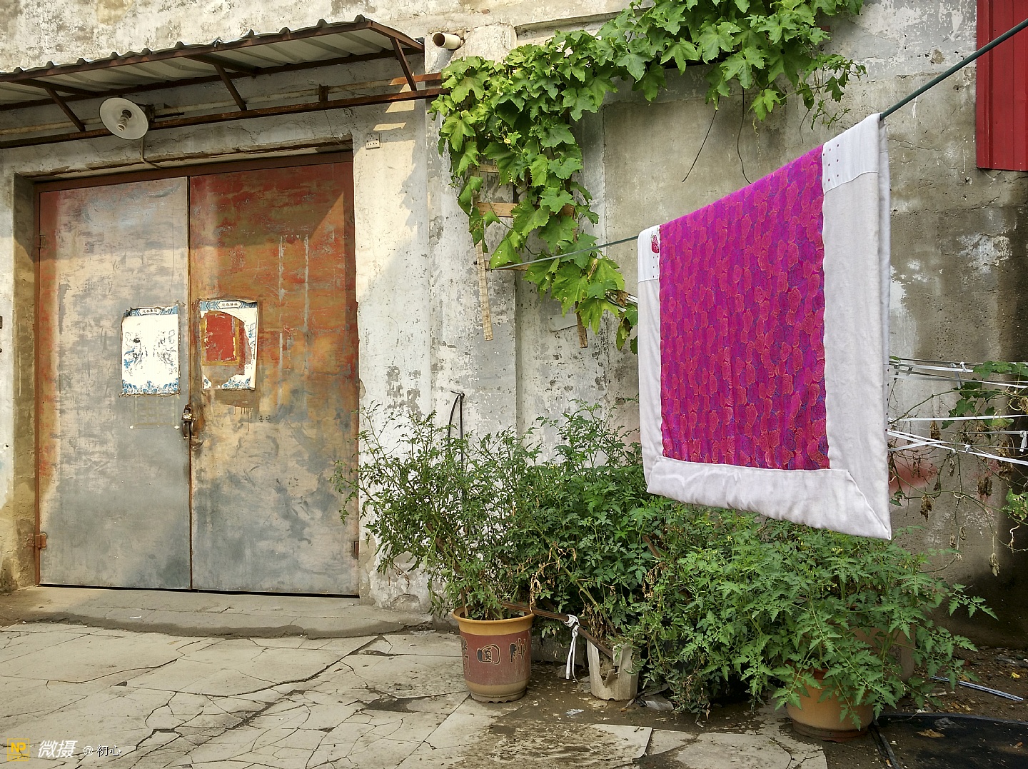种在隔壁老曹家库房墙角的花盆里。