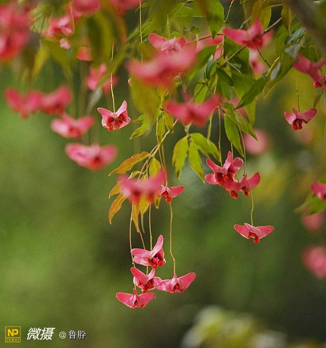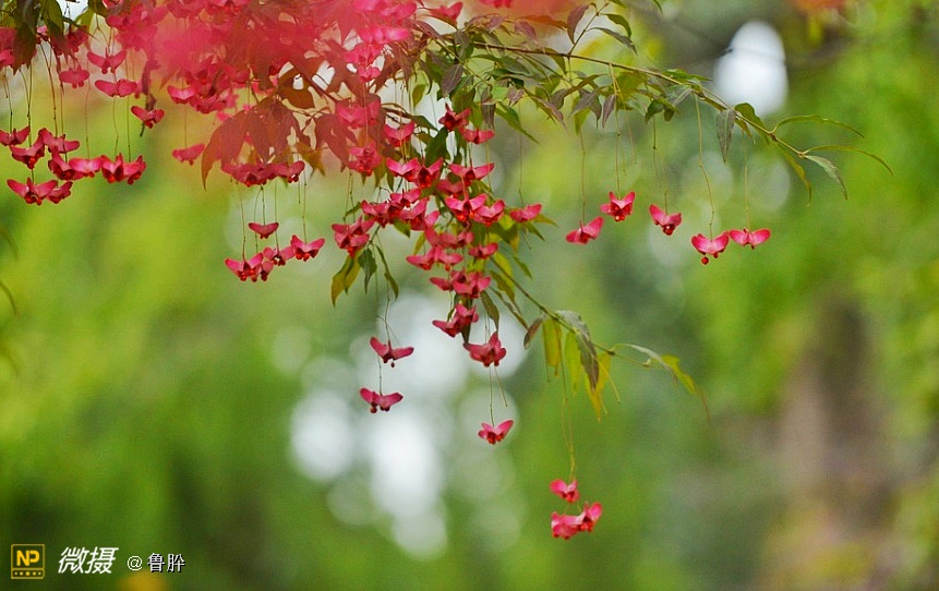 一簇簇悬挂在高高树枝上的仿佛是一个个小小风铃!微风吹来,在细细茎丝端尽情摇曳,有似蝶儿翻飞,灵动可人风情十足!